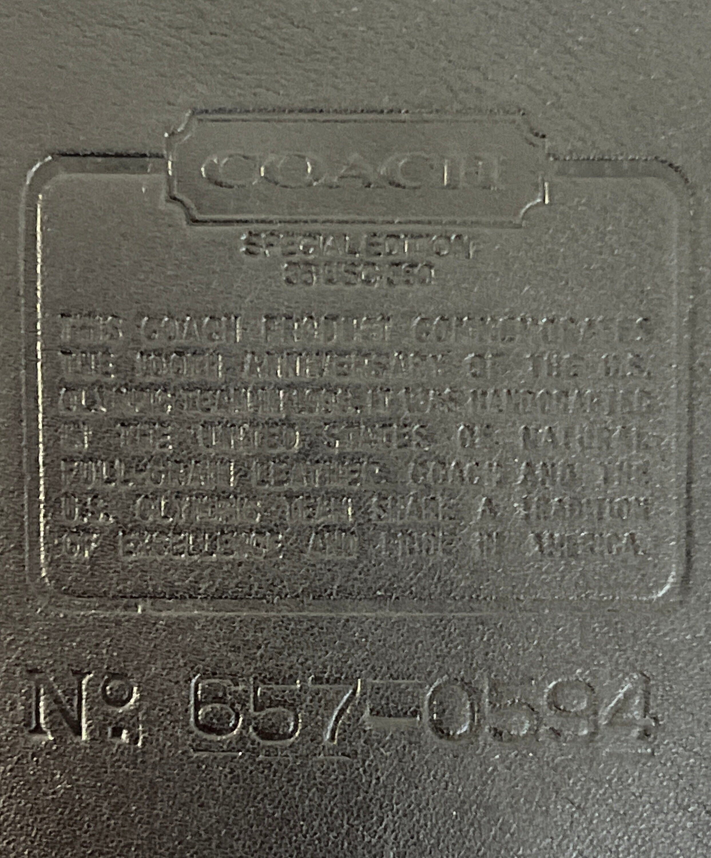 This Coach bag has thick, soft, and smooth leather with brass hardware. It is marked w/ an embossed creed and serial number indicating this bag was made in 1996 in United States