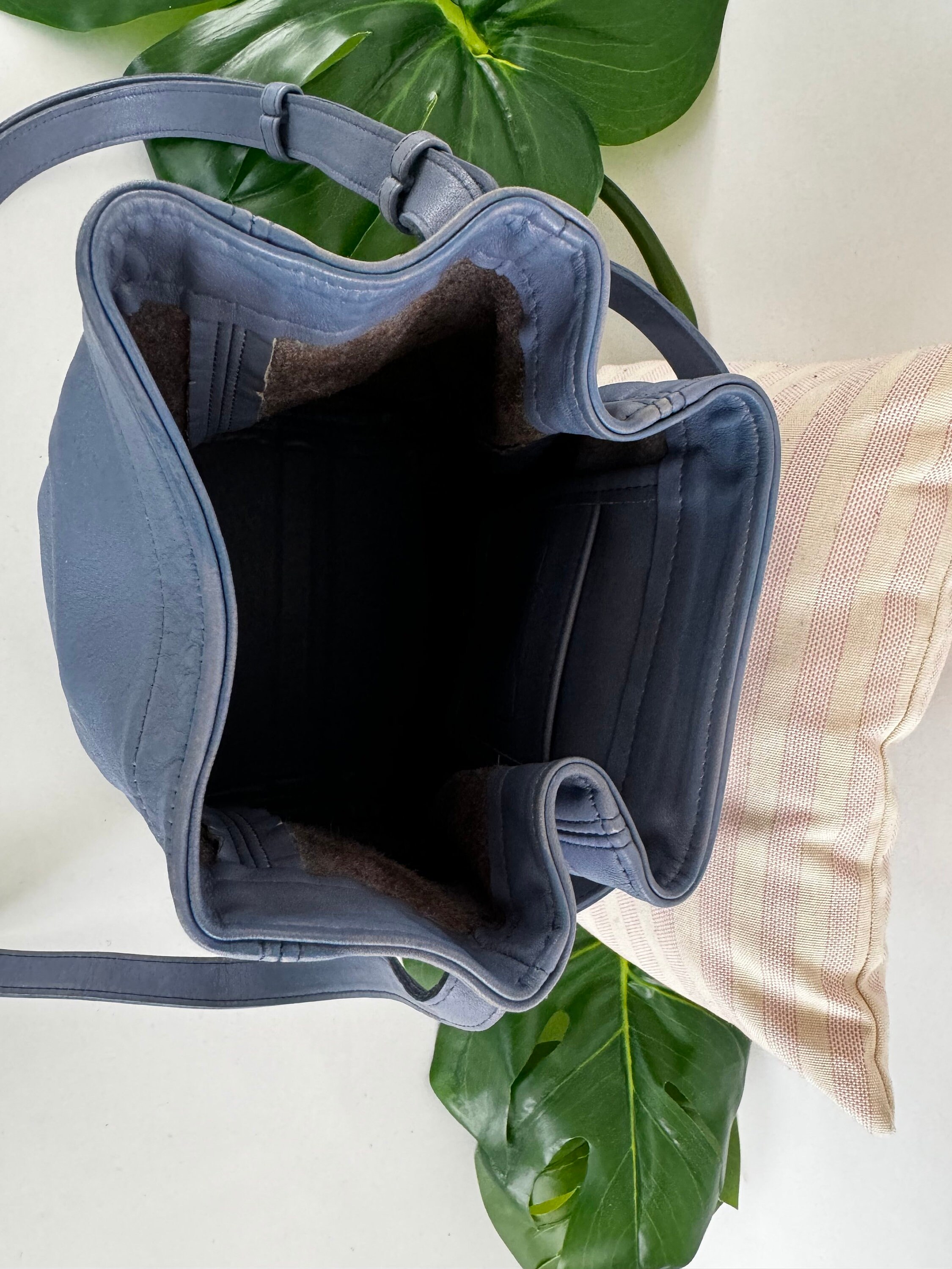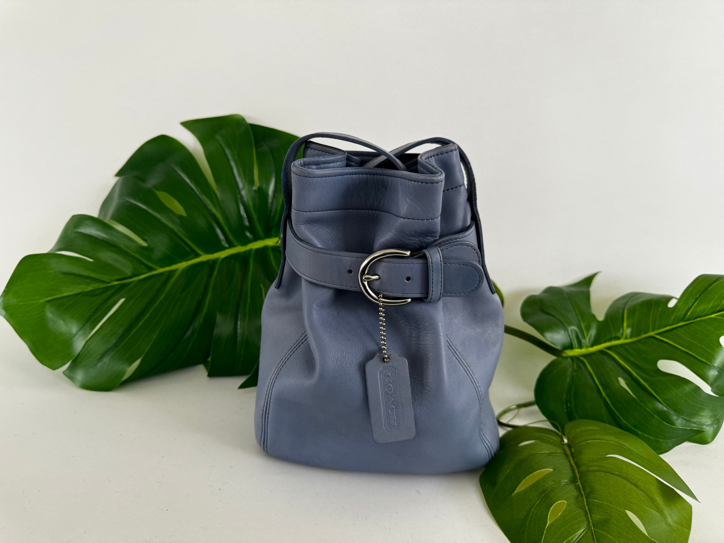 Vintage Coach | Soho Belted Pouch | 4156 | Periwinkle This Coach bag has thick, tanned, gloved leather that is soft and smooth. It is marked with an embossed creed (label) that indicates this bag was made in the USA in 1997 Features: 1 main compartment