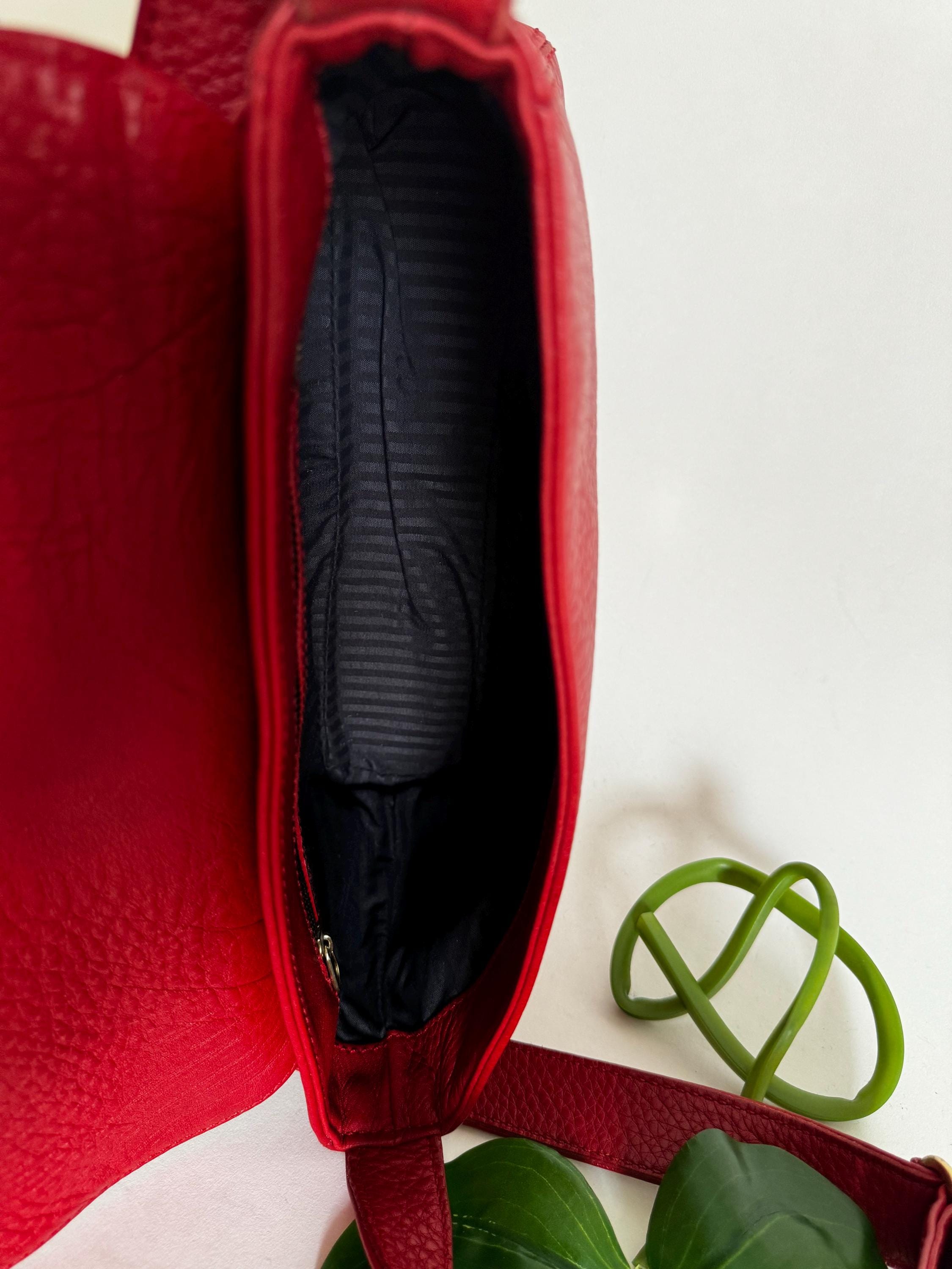 Features: -Flap snap closure -Interior zip pocket -Exterior slipcover -Adjustable strap, 19" drop -Soft pebbled -Clutch optional -Cleaned, Conditioned & ready to use!