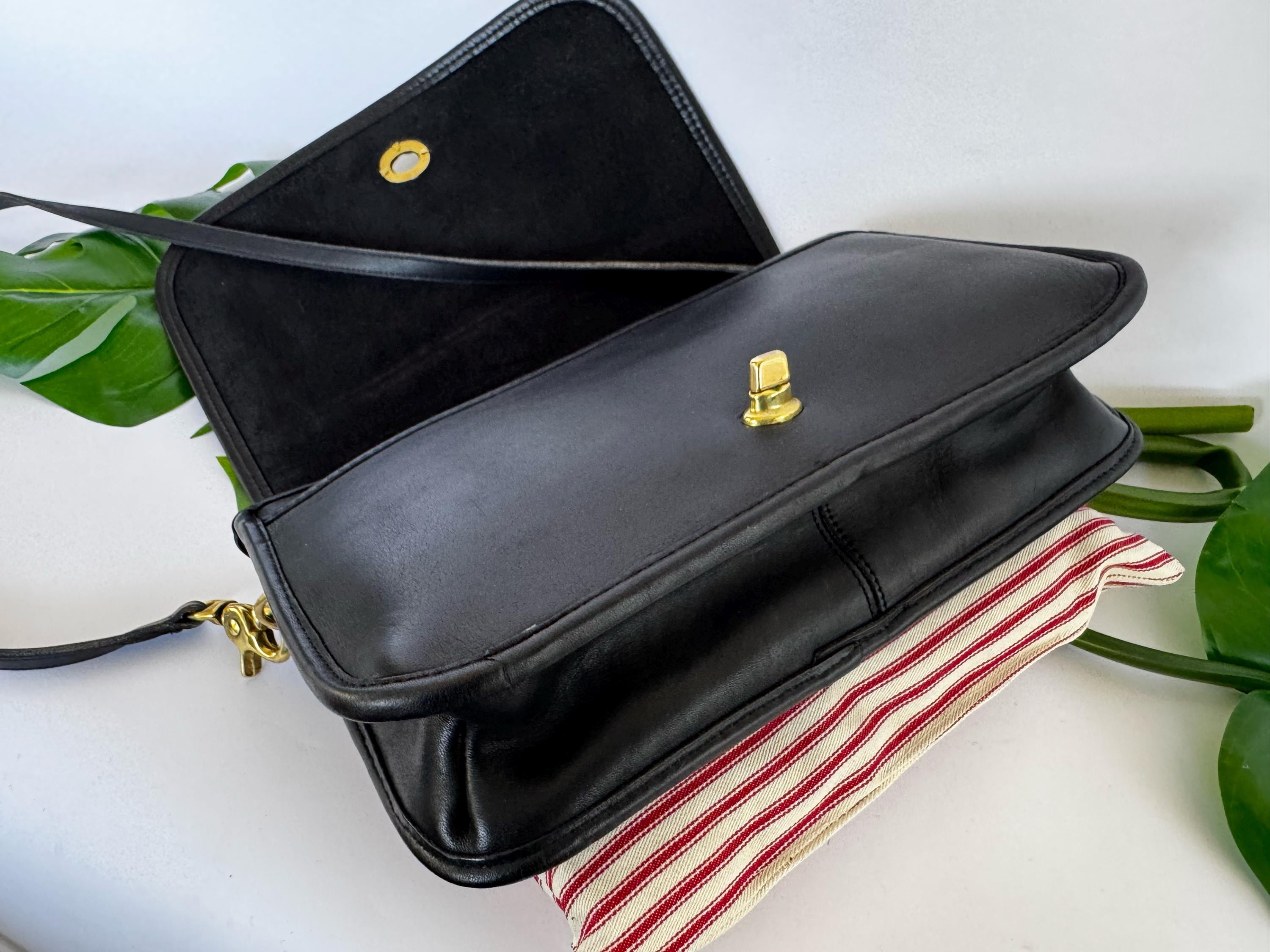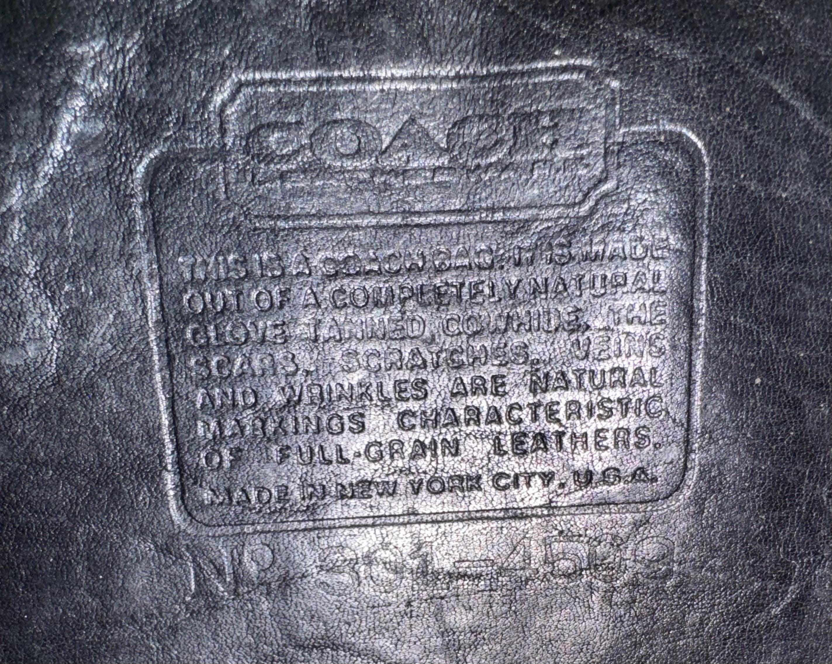 This Coach bag has thick, soft, and smooth leather with brass hardware. It is marked with an embossed creed and serial number indicating this bag was made in New York City in the 1970’s