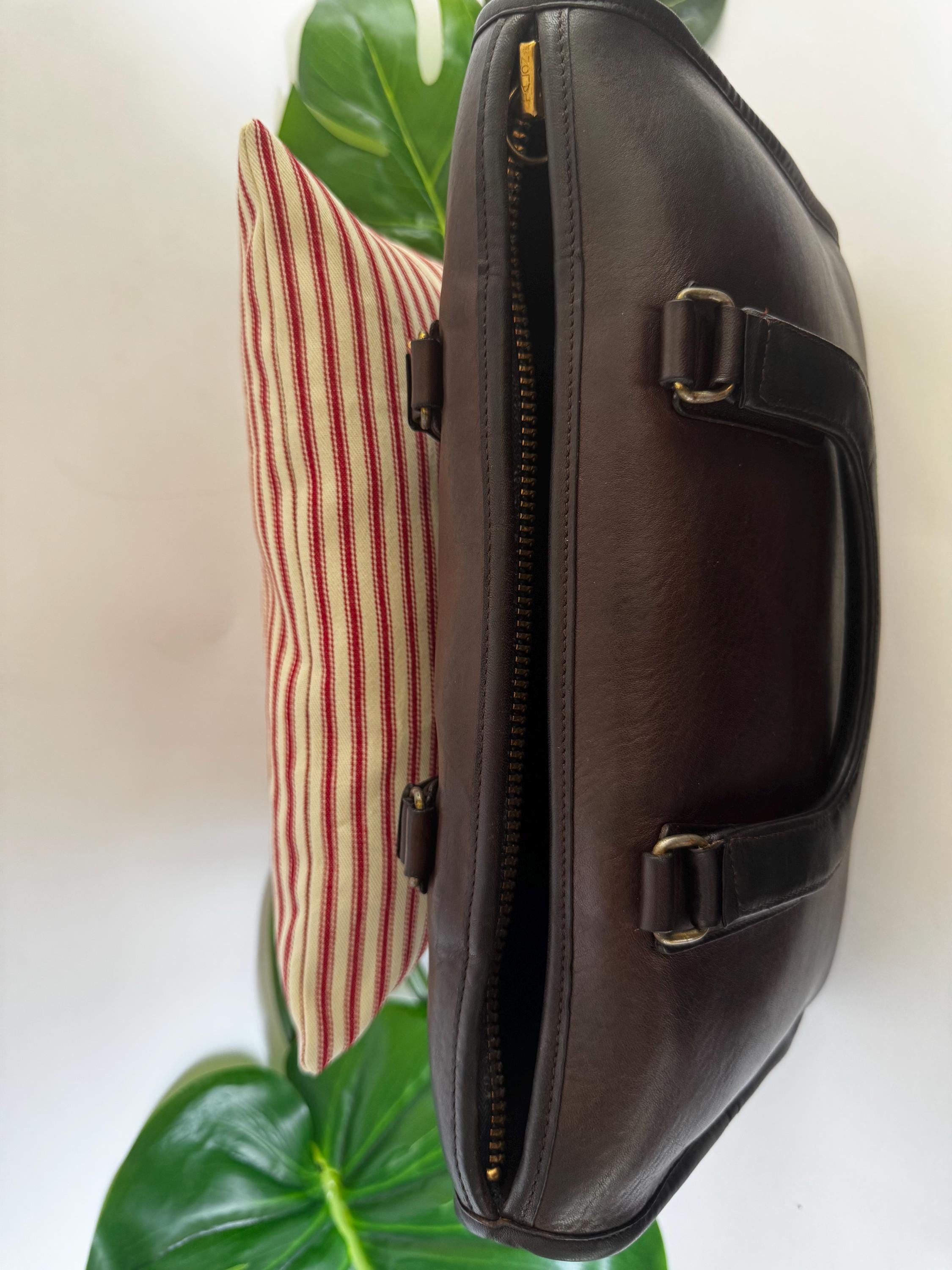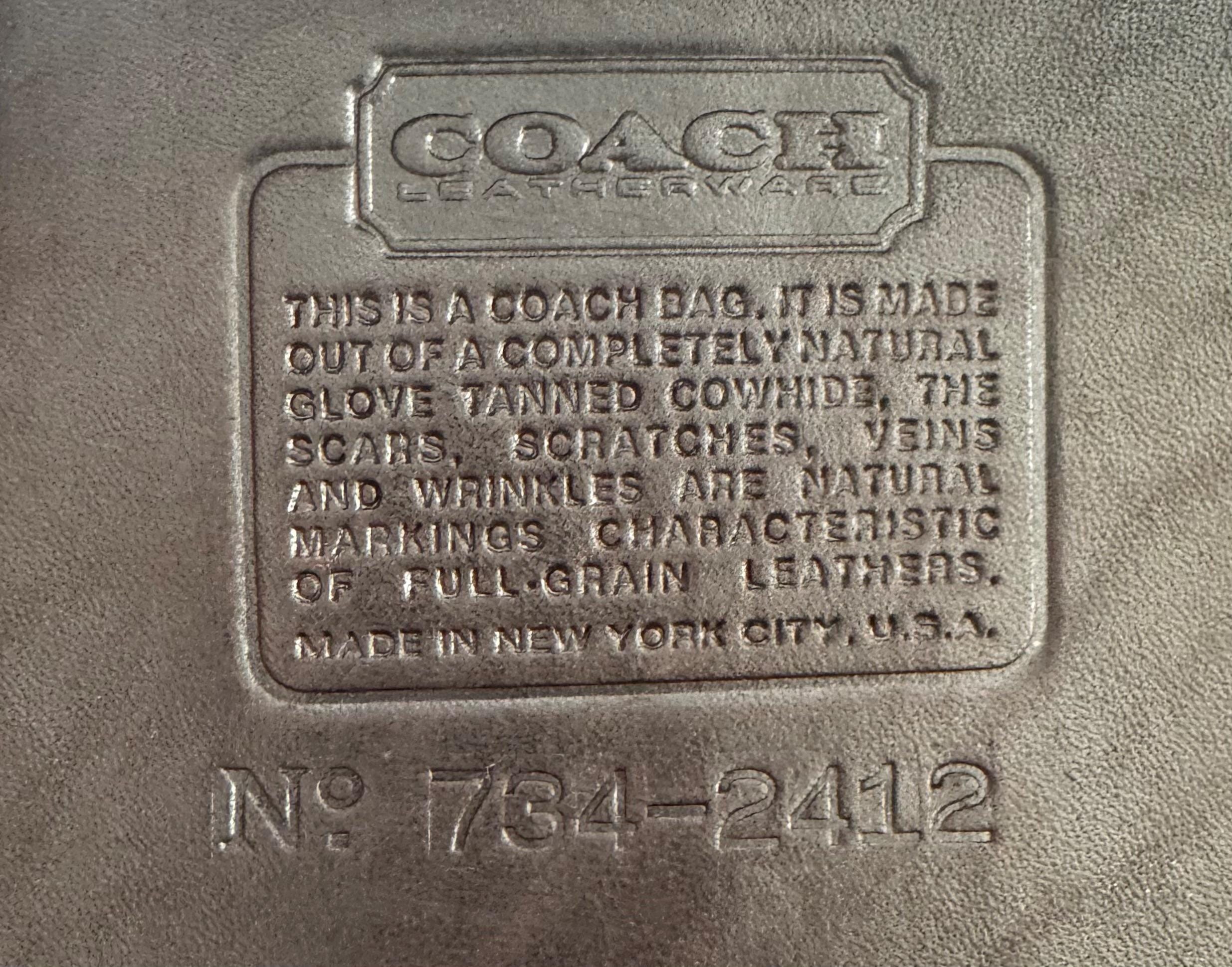 This Coach bag has thick, soft, and smooth leather with brass hardware. It is marked w/ an embossed creed and a glued serial number that dates back to the 1970s made in the original NYC factory! This bag was originally called a Handle Clutch. When Coach reissued the bag in the ’80s, the name changed to a Large Slim Satchel.