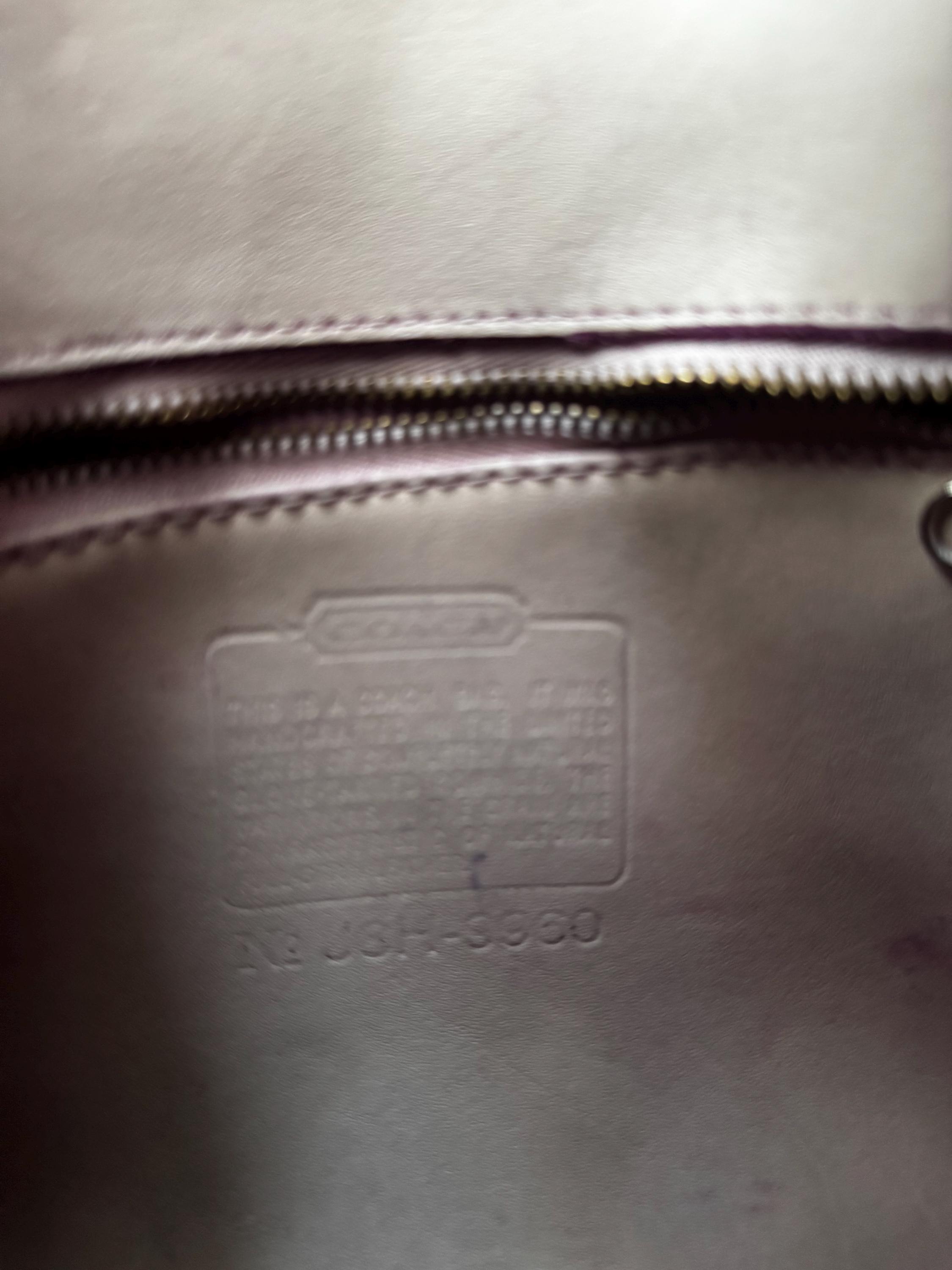 This Coach bag has thick, soft, and smooth leather with silver hardware. It is marked w/ an embossed creed and serial number indicates this bag was made in the USA in 1998