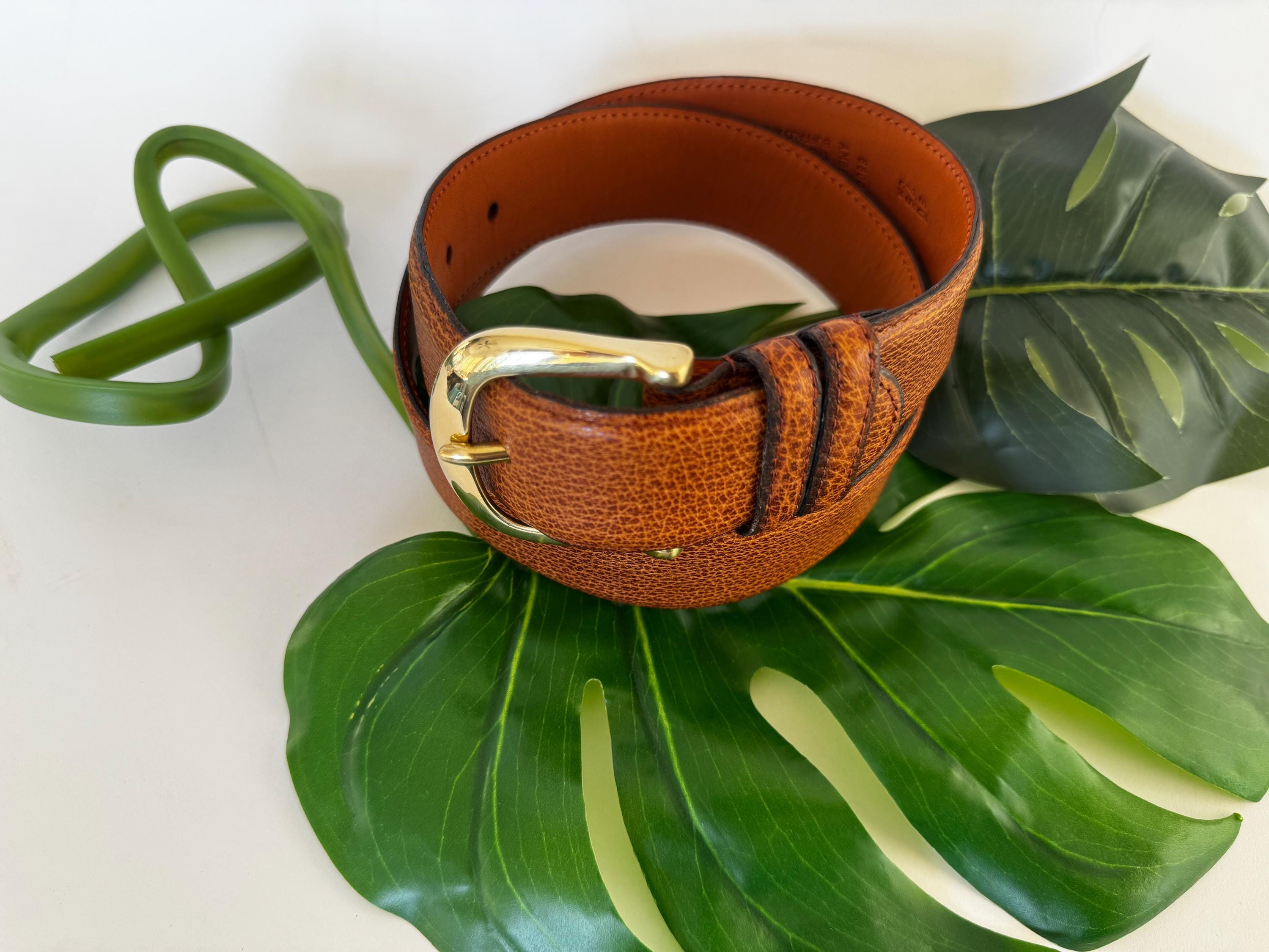 -1 1/2” Water Buffalo Belt (New Early Fall 1988) -Size 27"- 31" length -Solid Brass belt buckle -Color: Amber