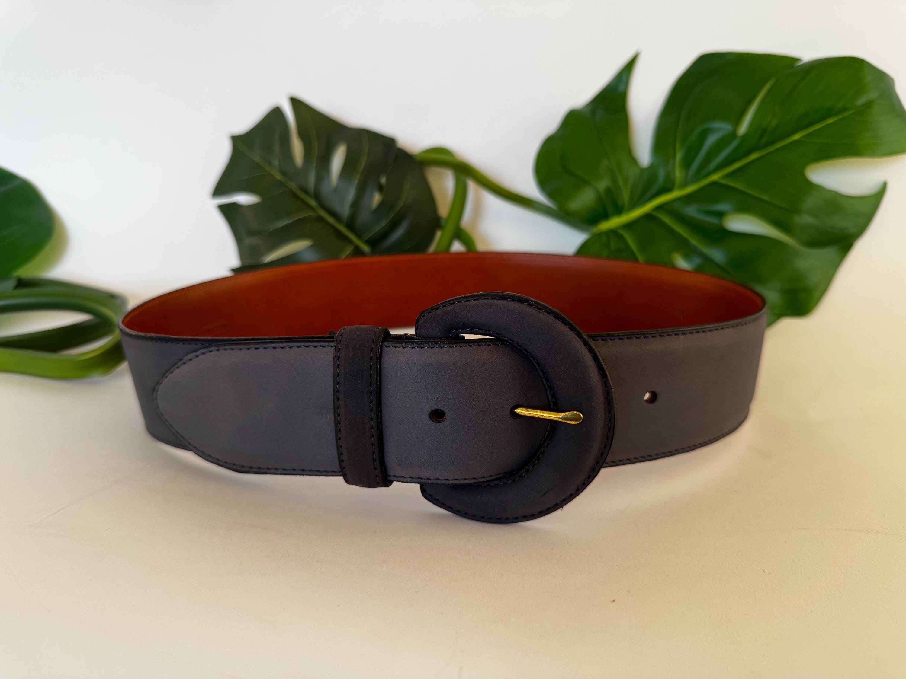 -1 7/8” Nubuc Suede Belt (New 1990) -Size Medium -27.5"-31.5" length -Solid Brass Hardware -Color: Marine