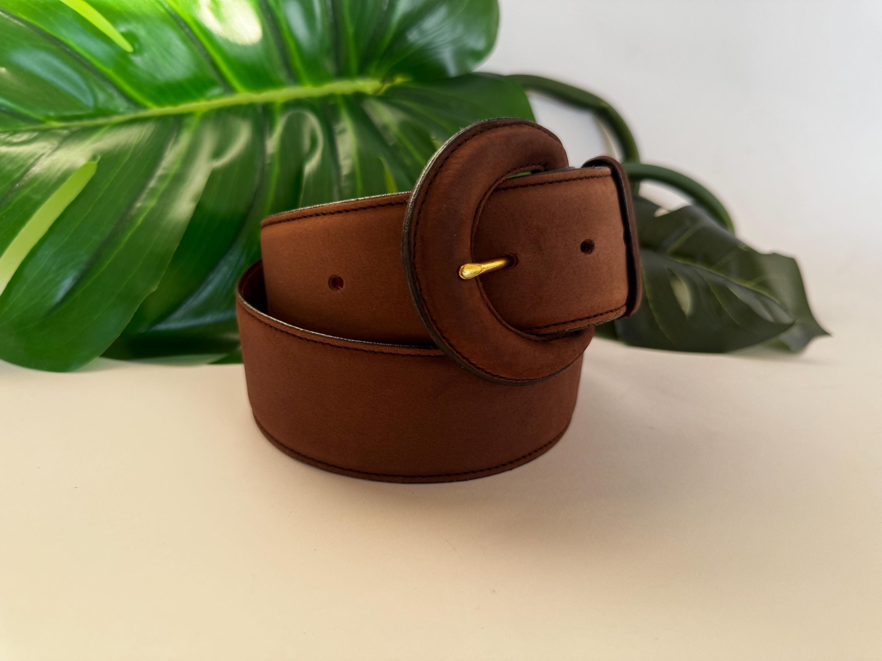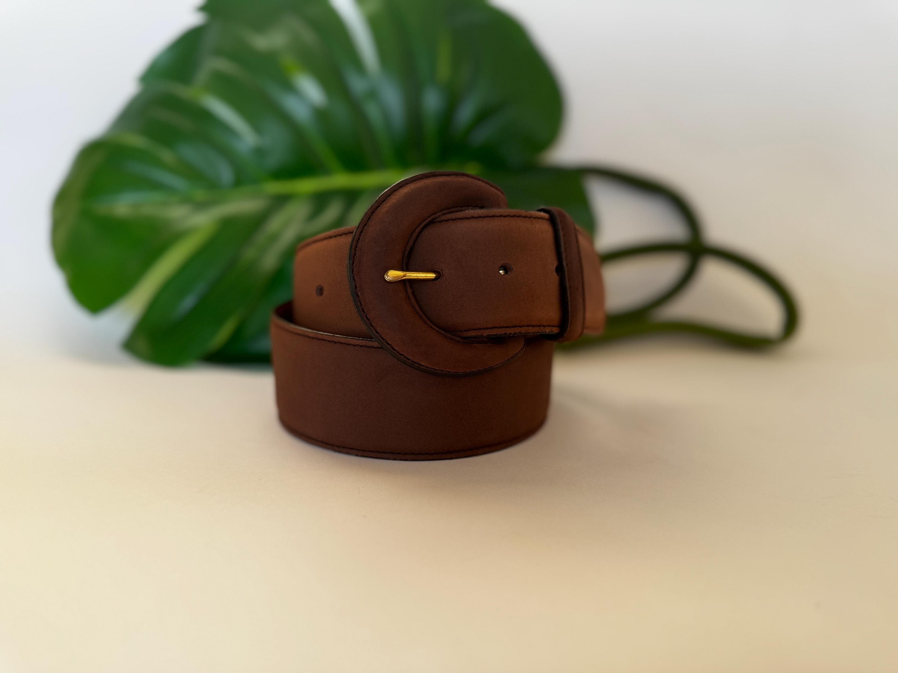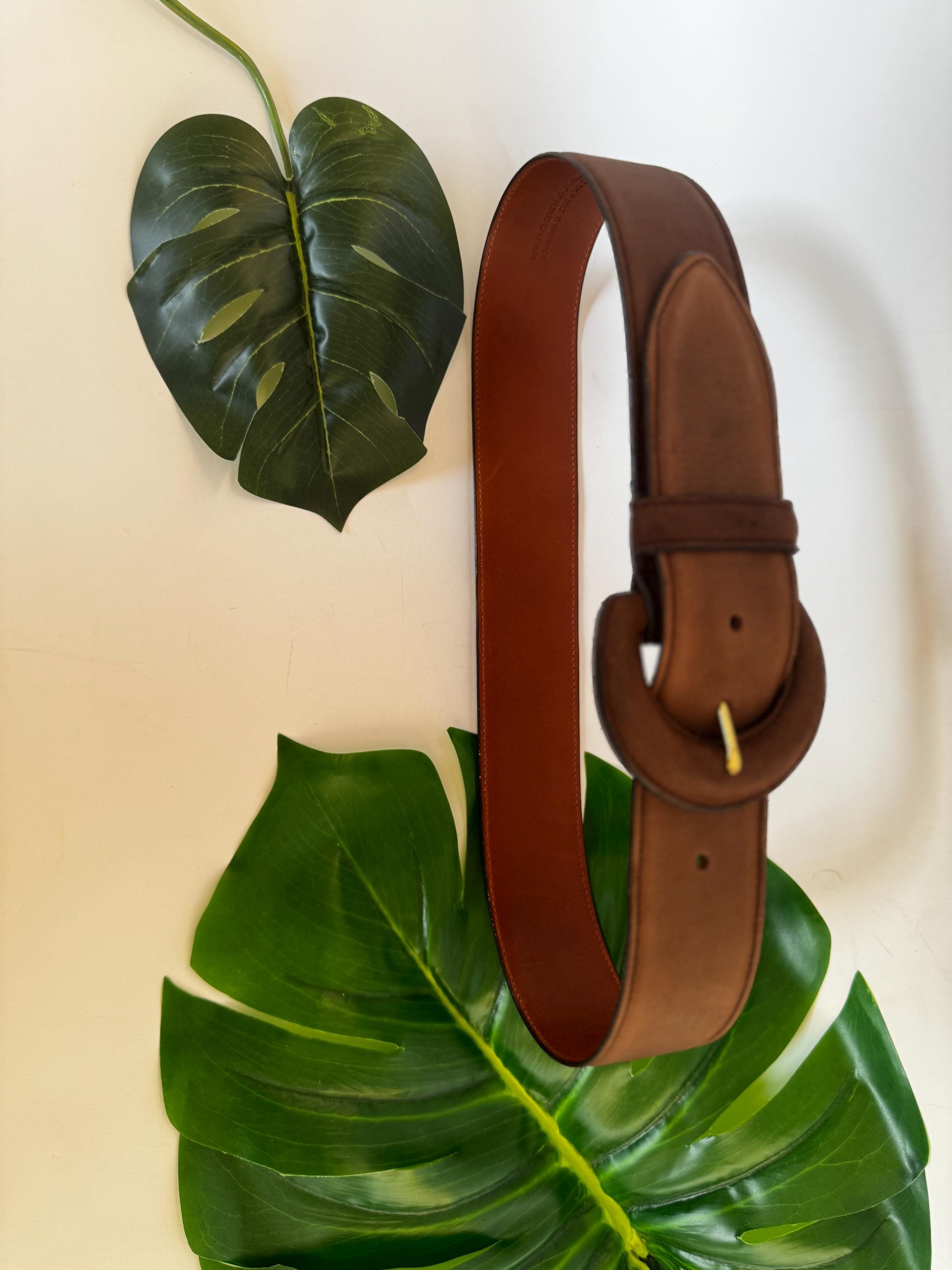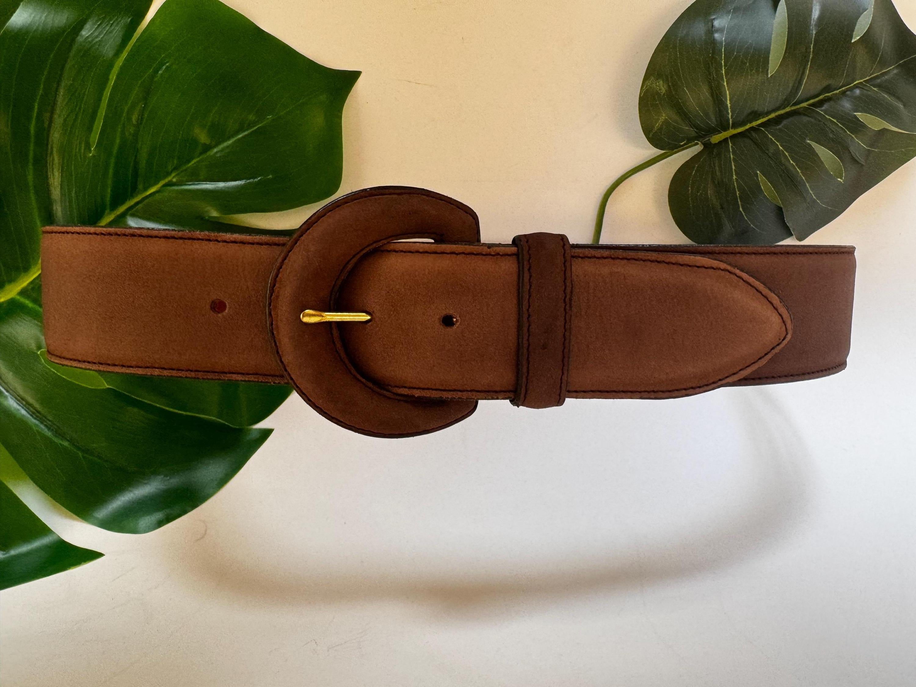 -1 7/8” Nubuc Suede Belt (New 1990) -Size Medium -27.5"-31.5" length -Solid Brass Hardware -Color: Coffee