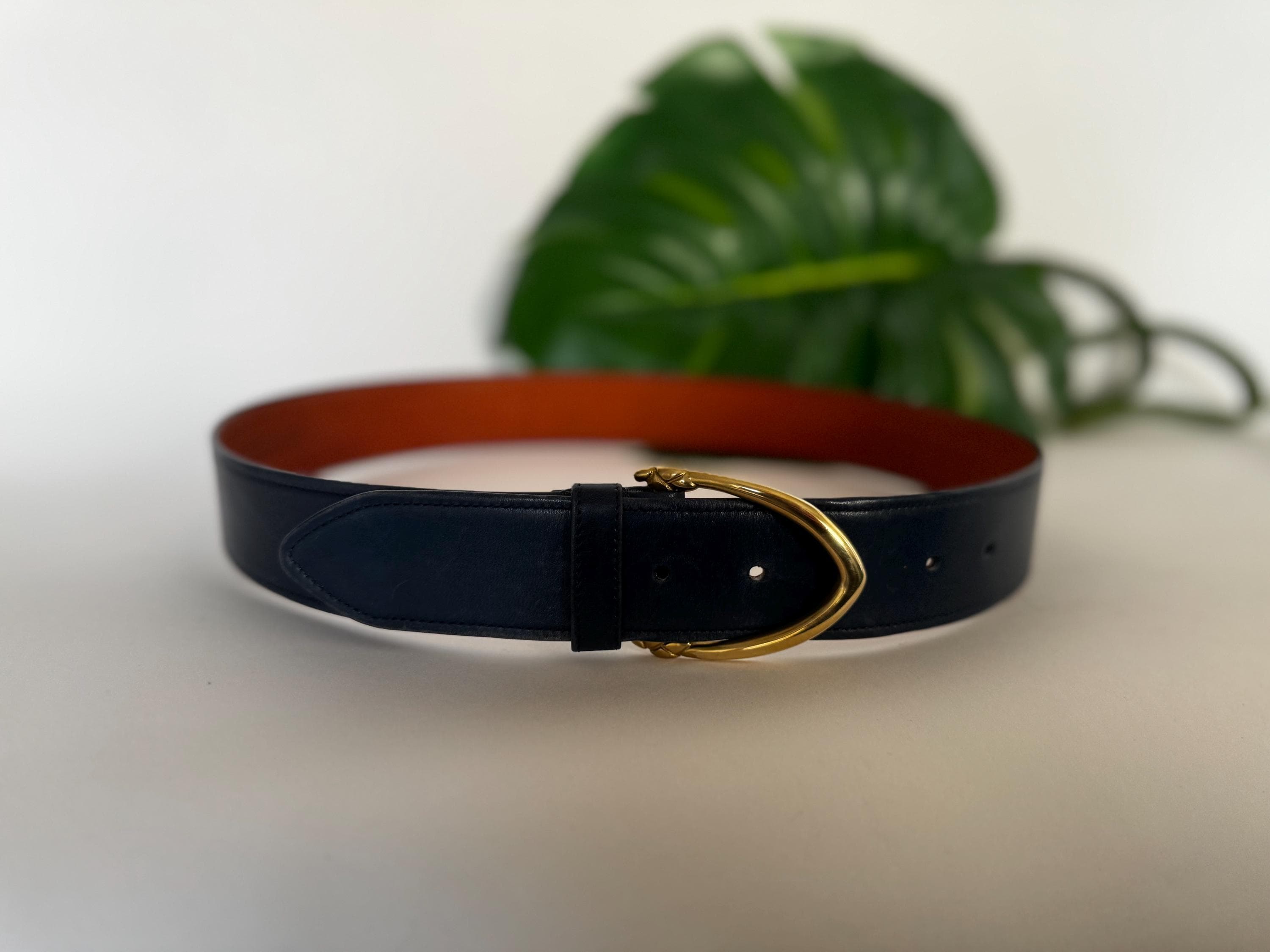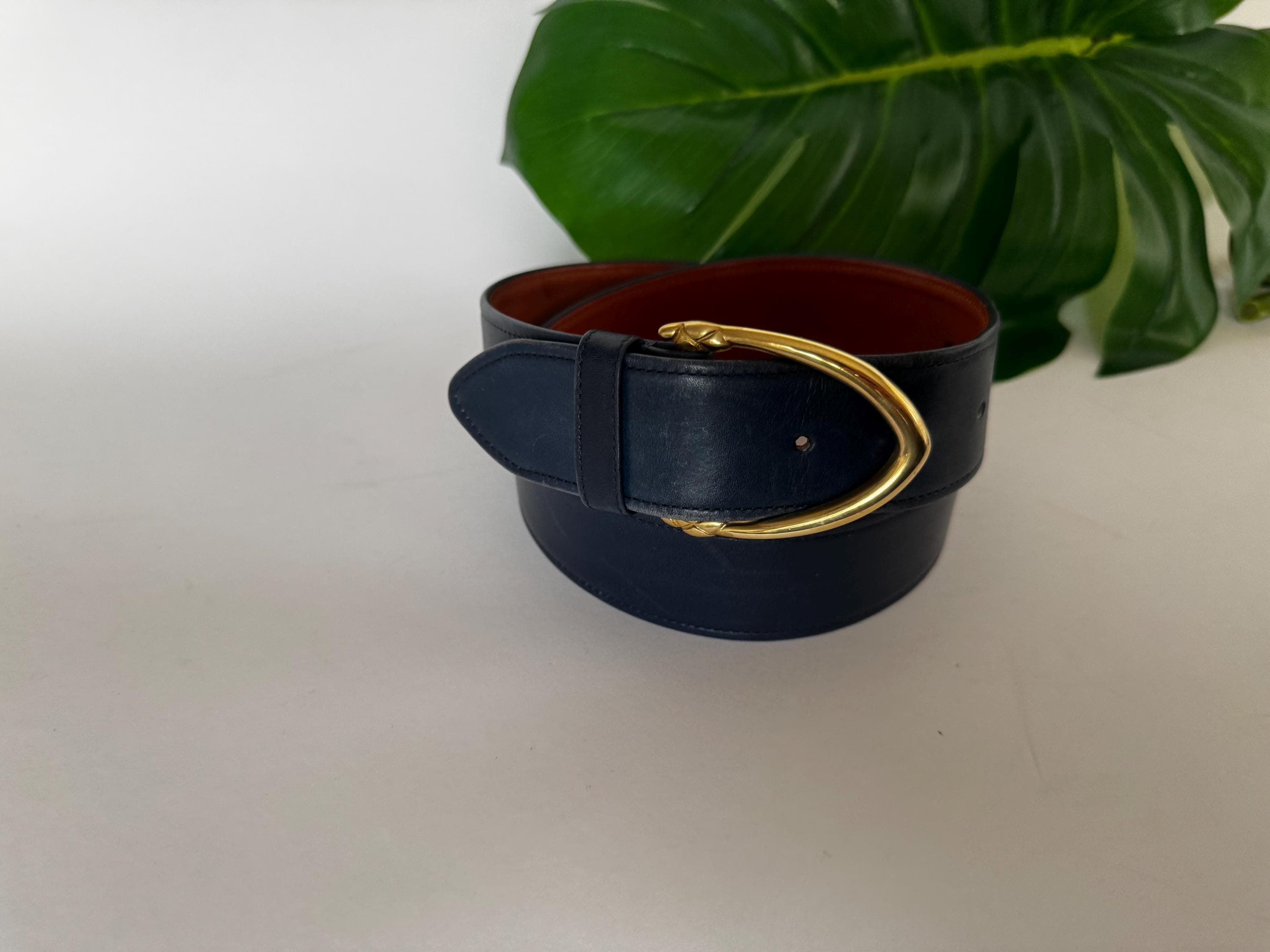 -1 1/2” Calfskin Dress Belt -Size: Large -32"-36" length -Solid Brass Hardware -Color: Navy