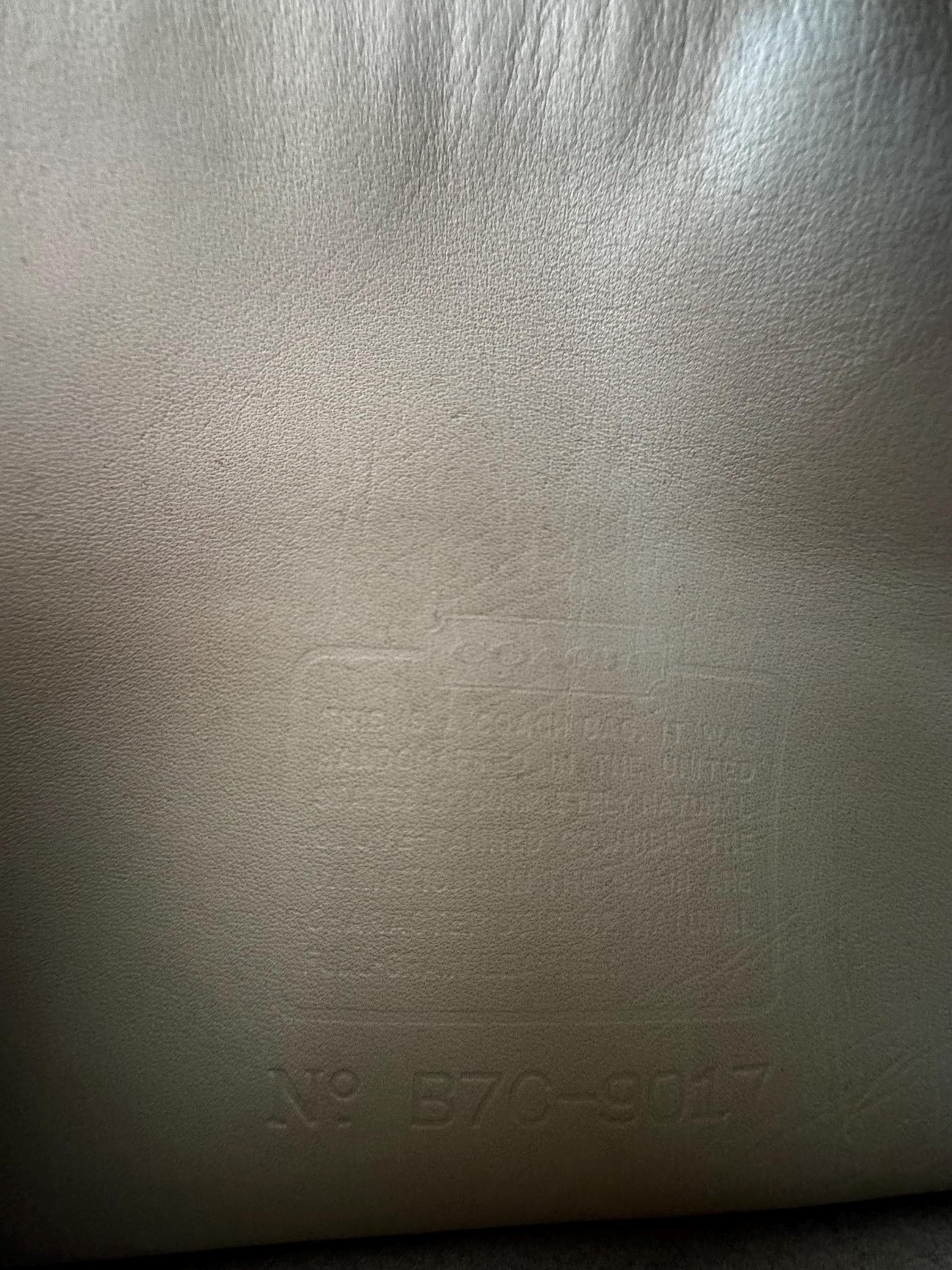 This Coach bag has thick, soft, and smooth leather. It is marked w/ an embossed creed and serial number indicates this bag was made in 1997, USA