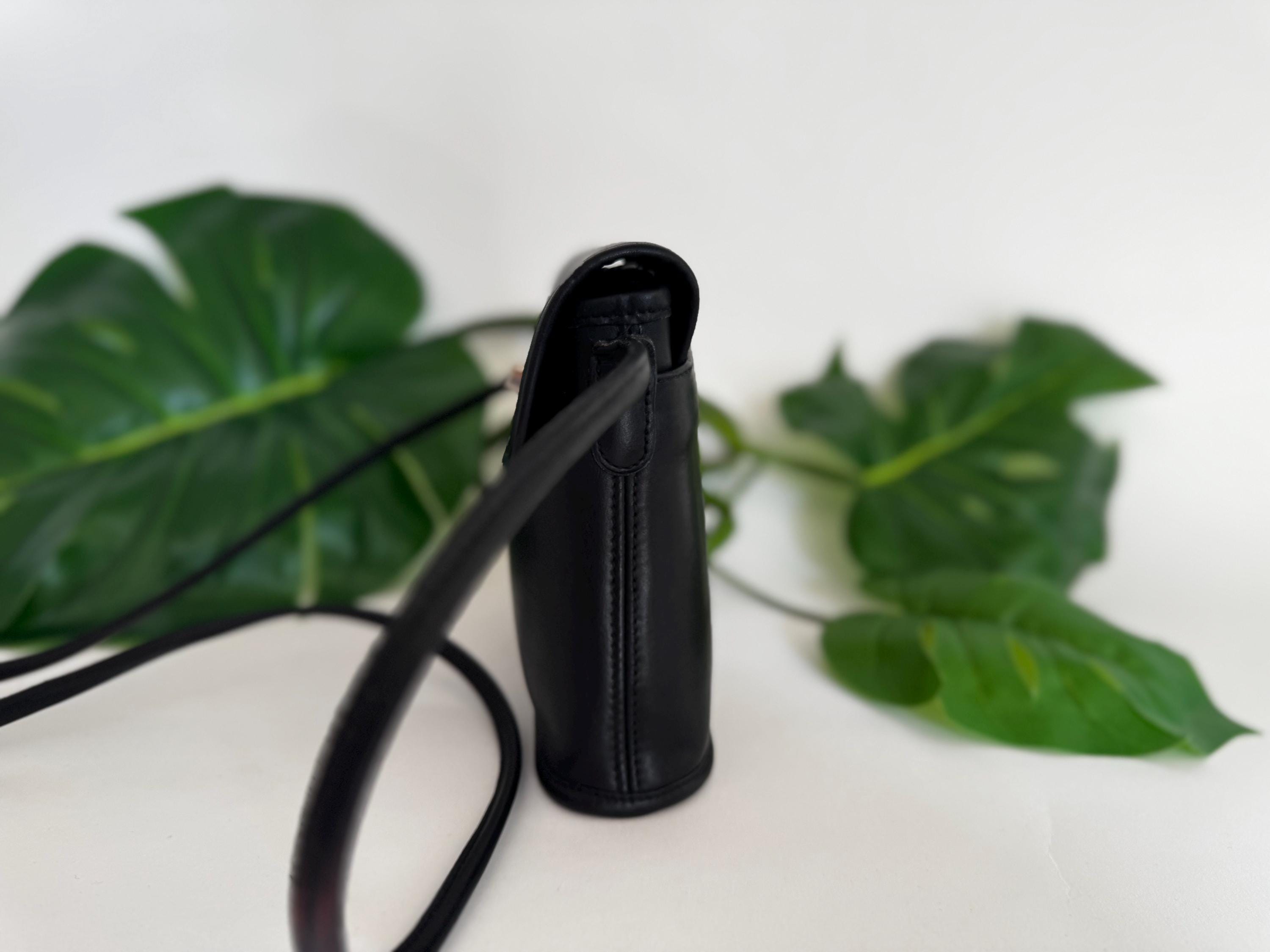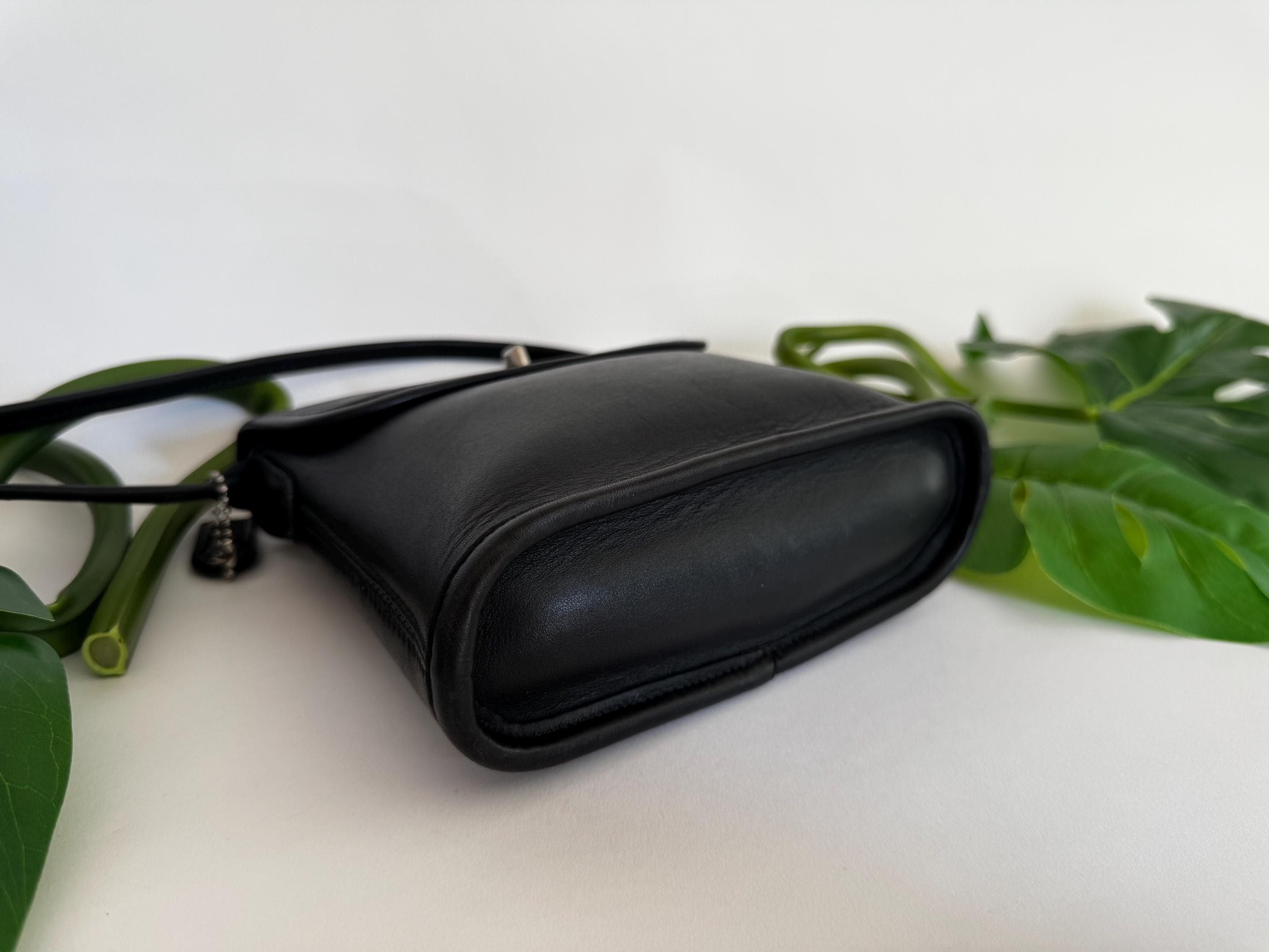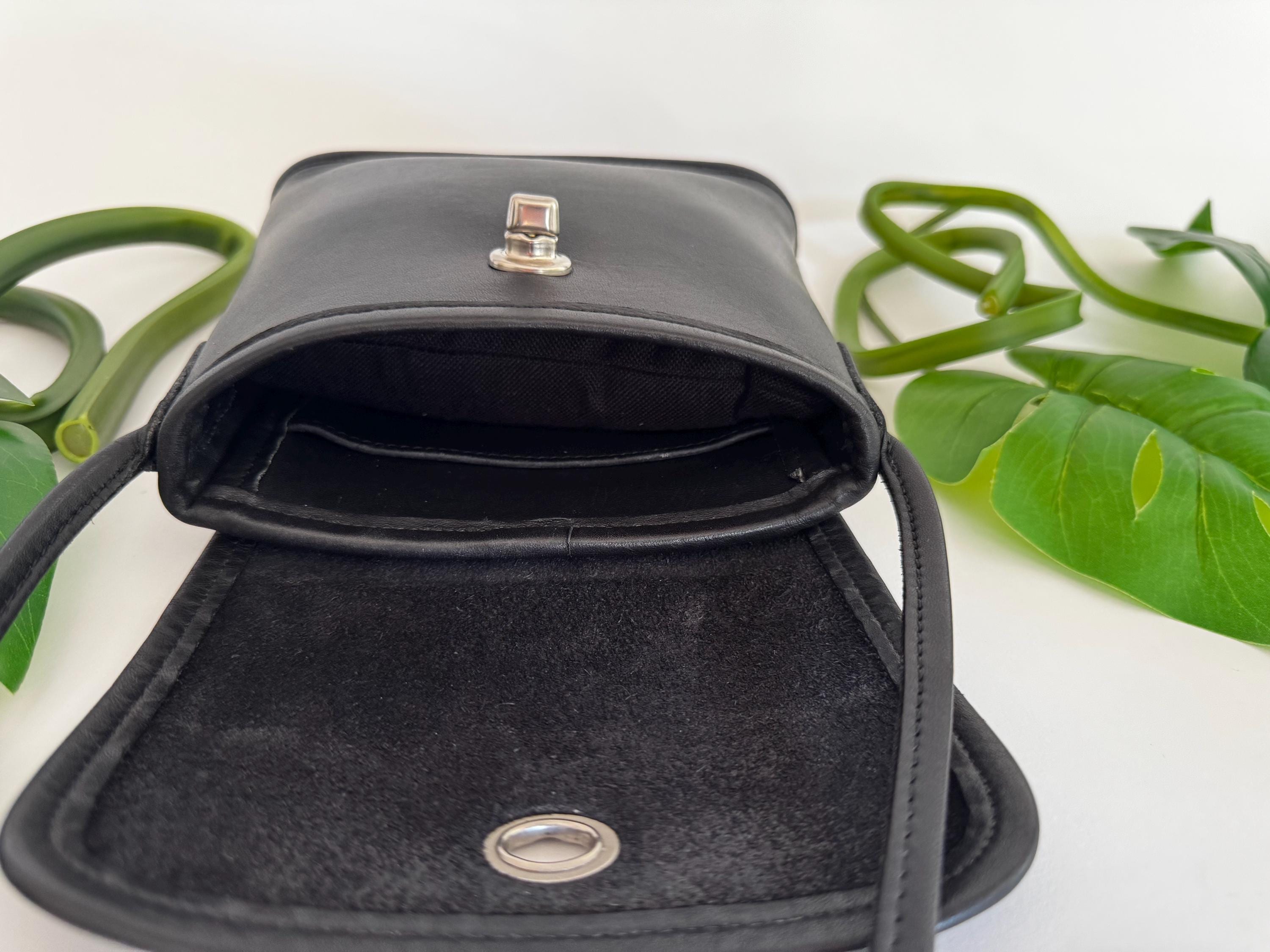 Features: -Flap closure with turnkey -Silver Hardware -Interior slip pocket -Exterior slip pocket -Shoulder strap, 22" drop -Cleaned, Conditioned & ready to use!