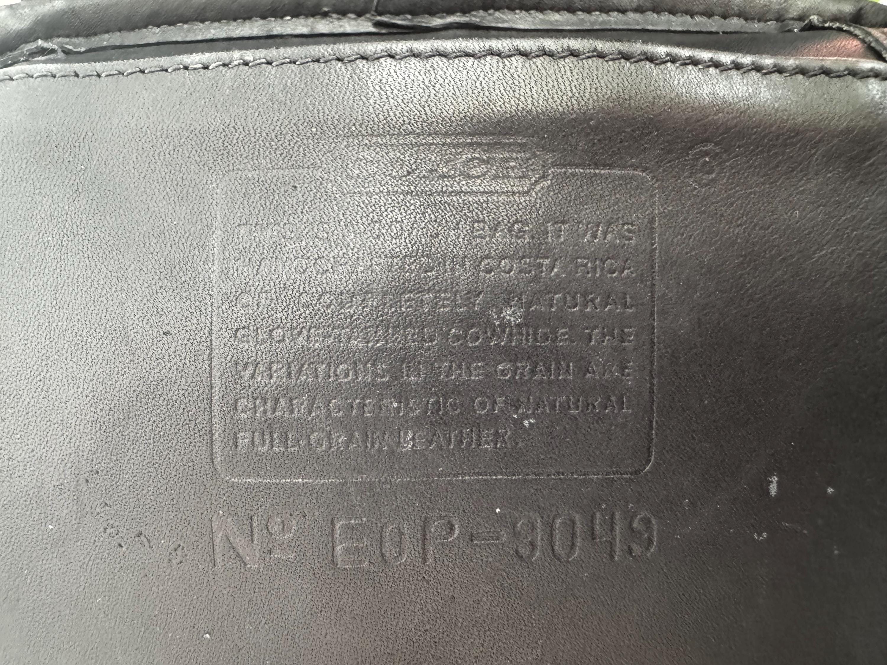 This Coach bag has thick, soft, and smooth leather. It is marked w/ an embossed creed and serial number indicates this bag was made in Coast Rica in 2000