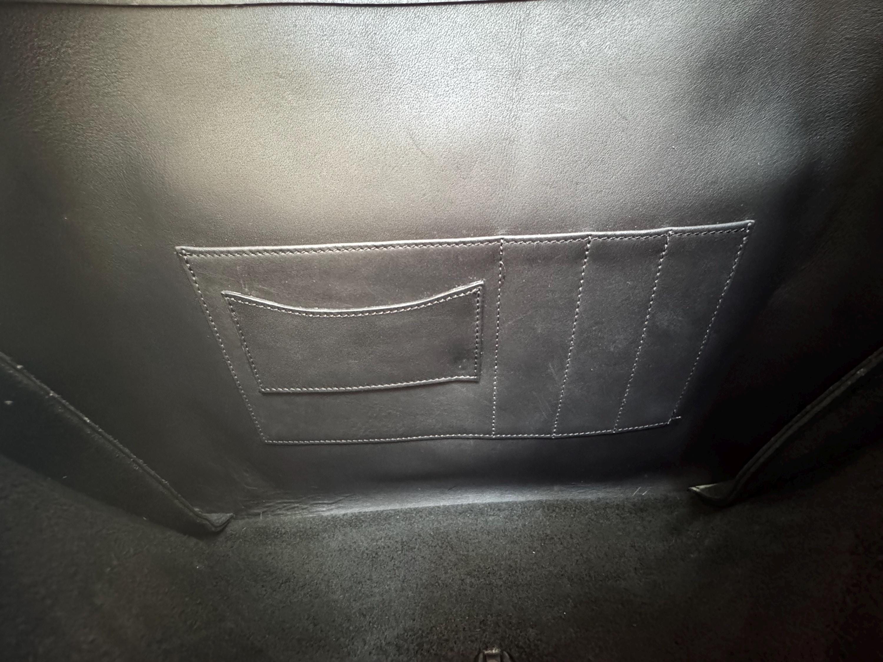 Features: Adjustable shoulder strap Silver turn closure Silver double lobster claw clasps Top Handles Exterior back pocket is perfect for files & paperwork Two Interior compartments Interior slip pocket Memo pad pocket, card pocket & pen holder Great for a laptop