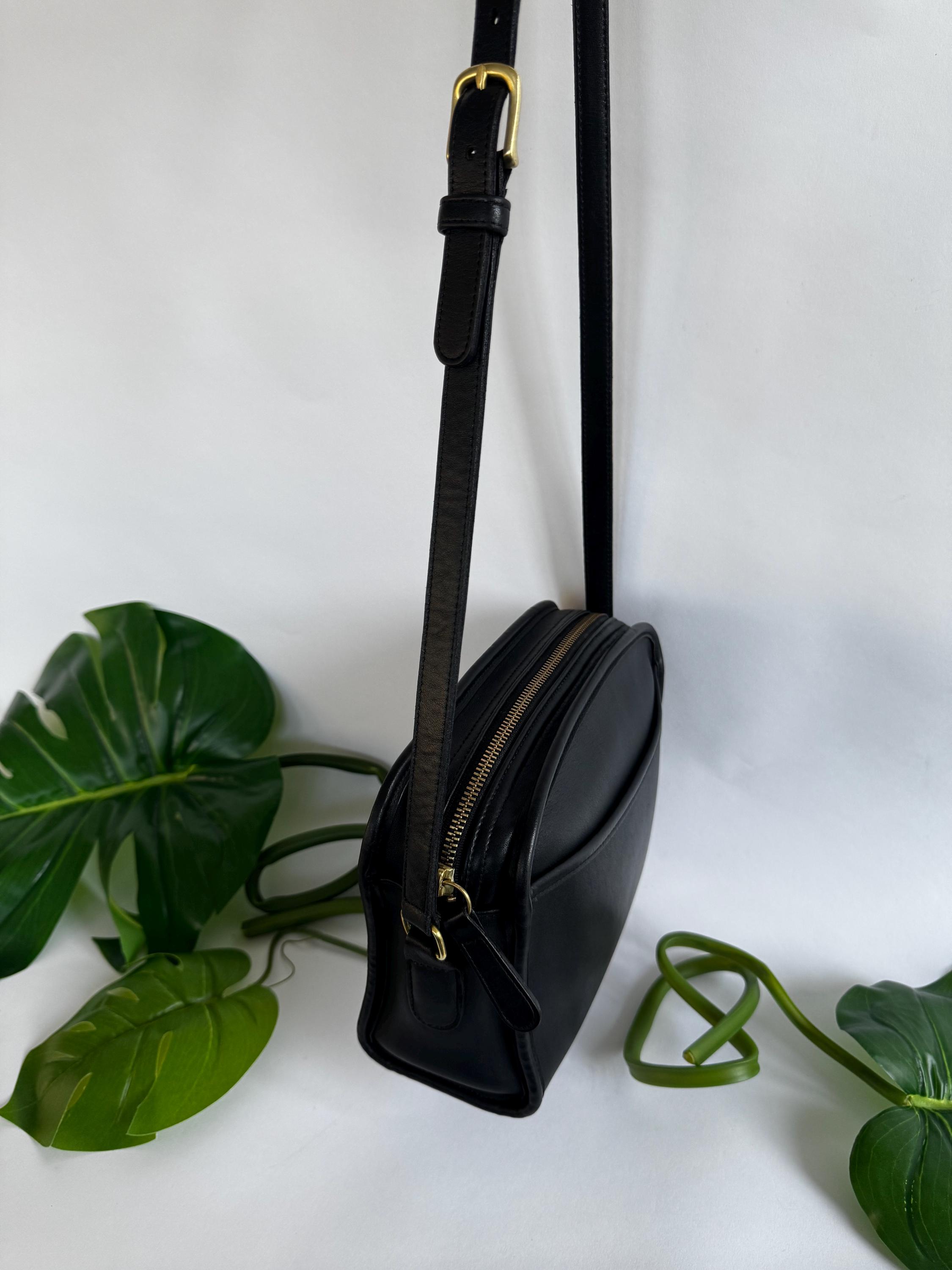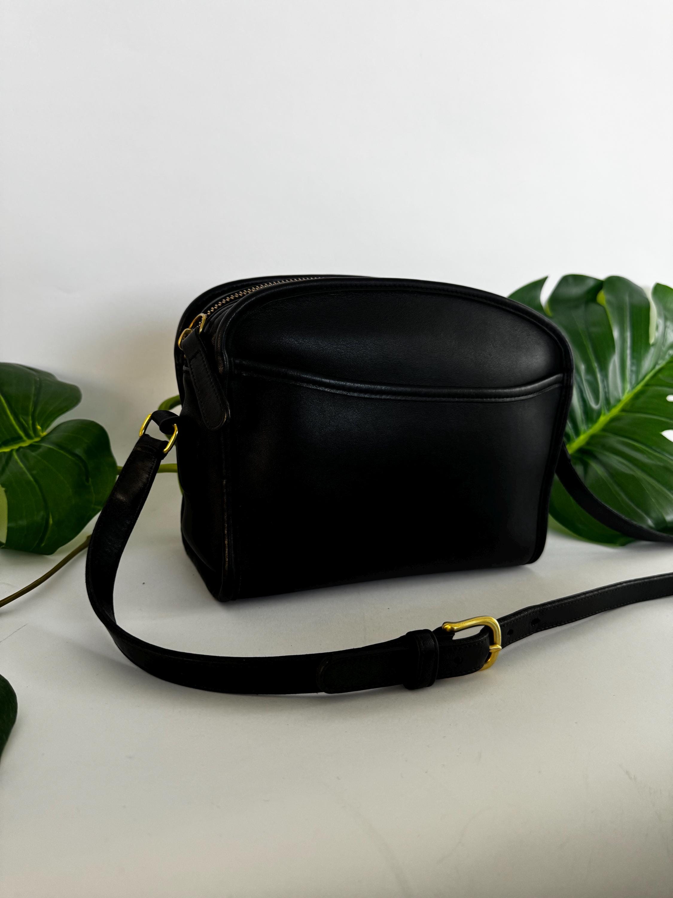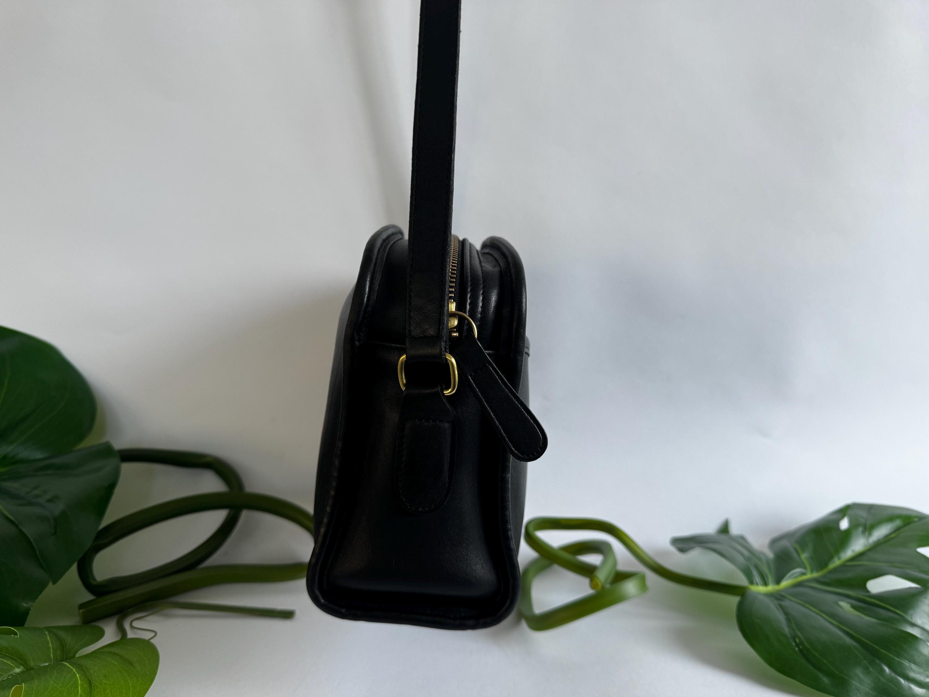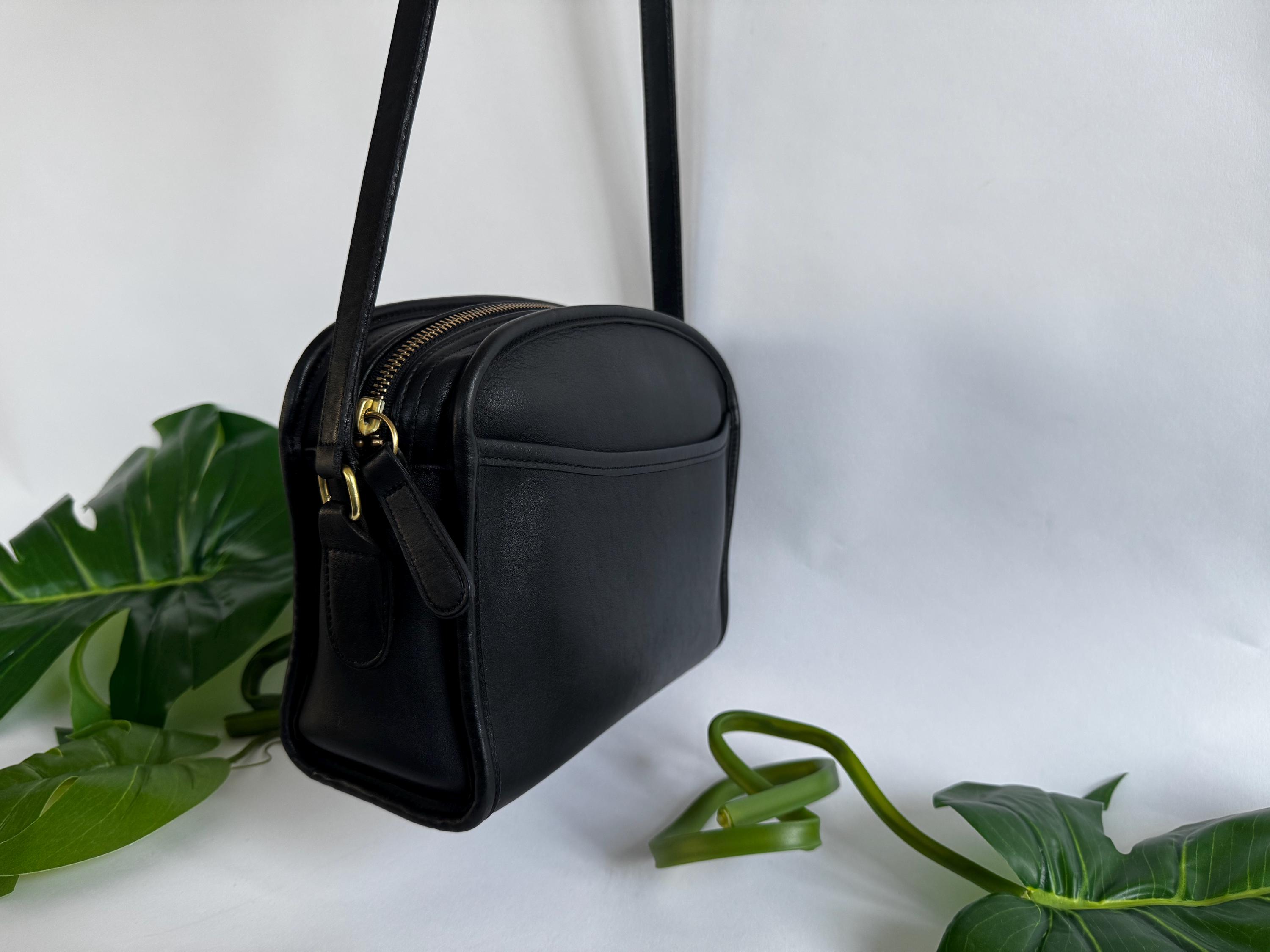Features: Classic Coach top closure brass zipper Interior zipper pocket Exterior slip pocket Shoulder strap, 23" drop, adjustable All brass hardware polished Cleaned, Conditioned & ready to use! In good vintage condition with light signs of wear