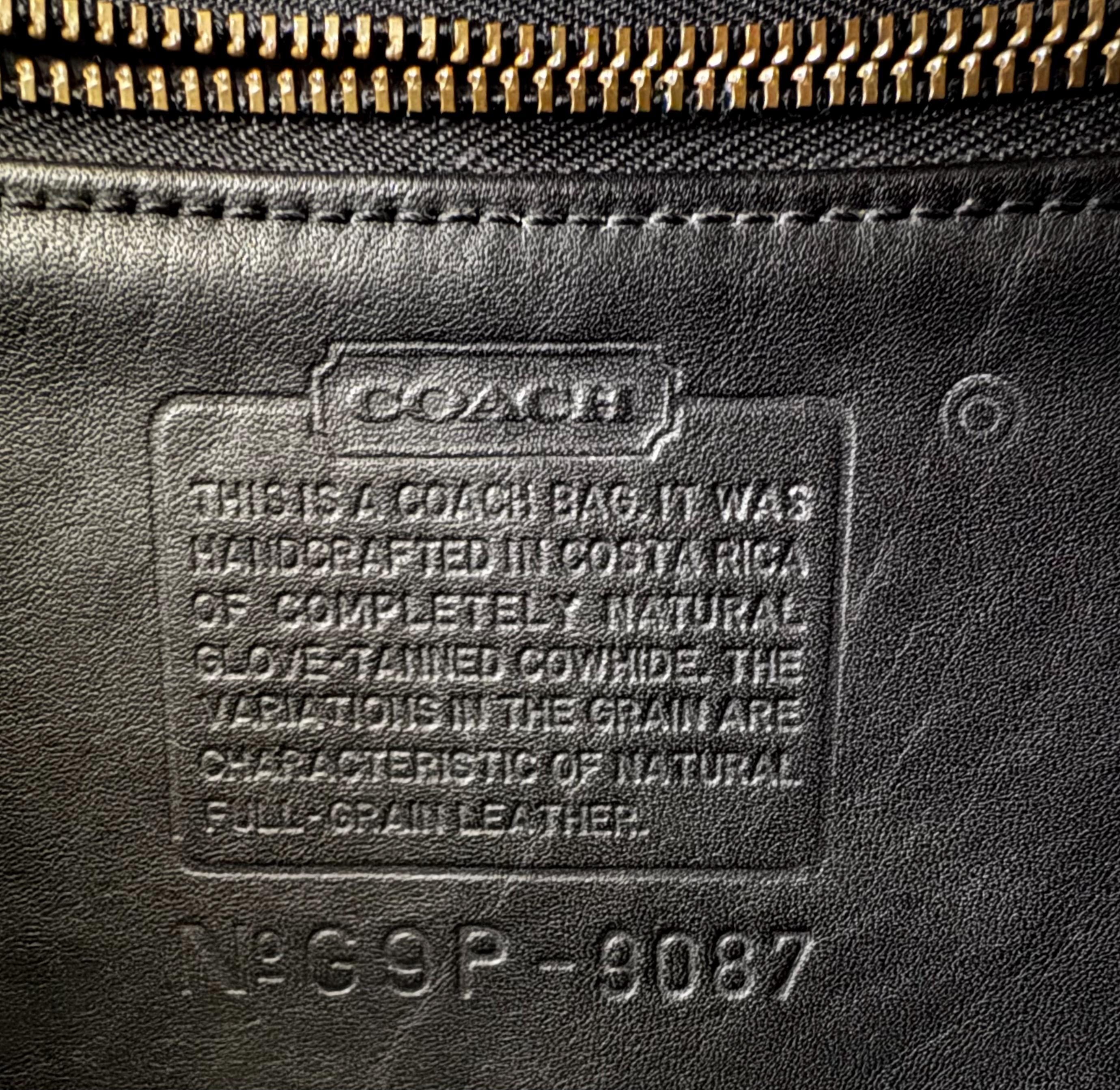 This Coach bag has thick, soft, and smooth leather with brass hardware. It is marked w/ an embossed creed with a serial number that indicates this bag was made in Costa Rica in 1999.