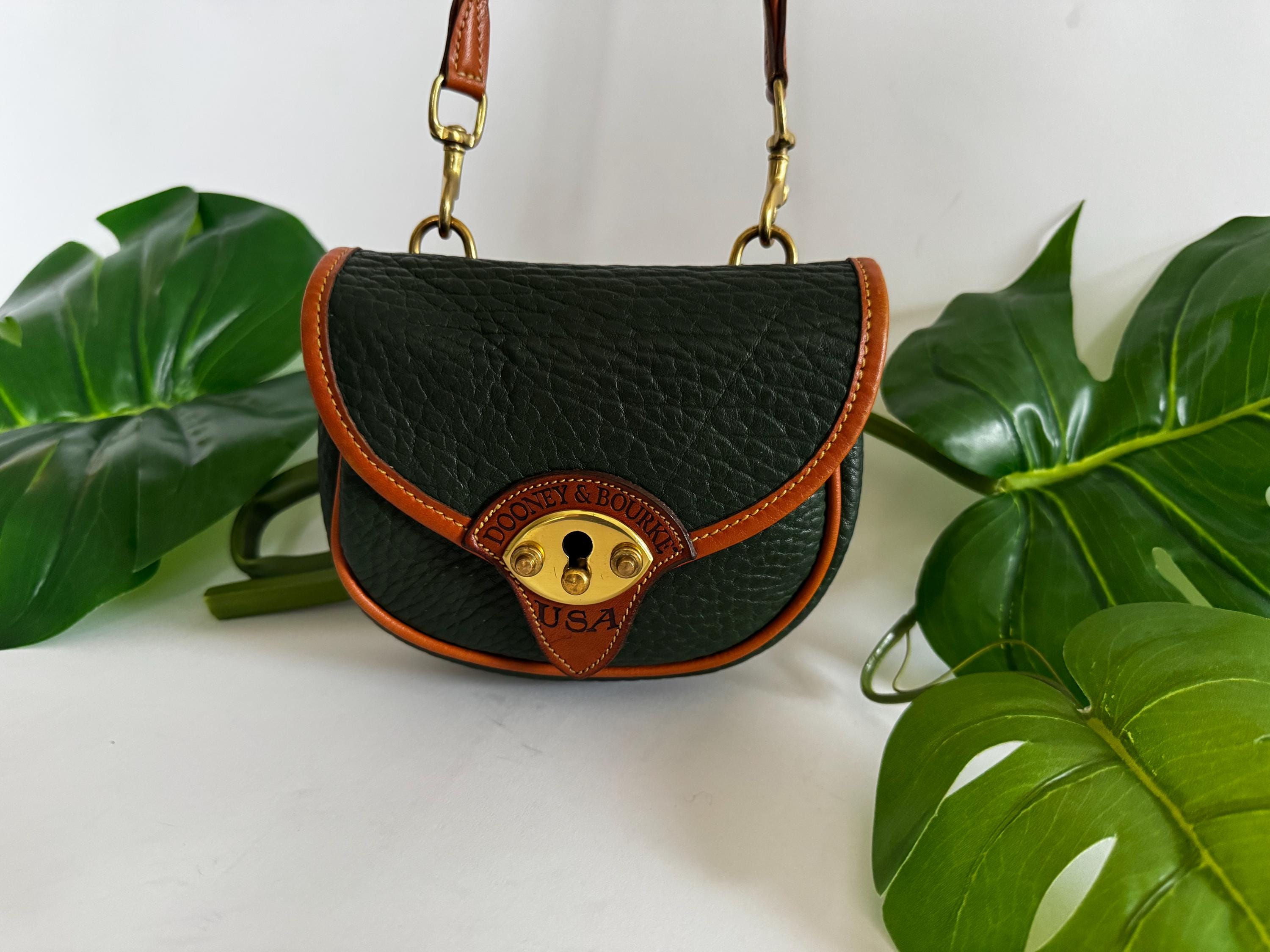 Emerald Green Dooney and Bourke mini crossbody OR waist bag, all-weather leather small Dooney & Bourke bag, Made in USA