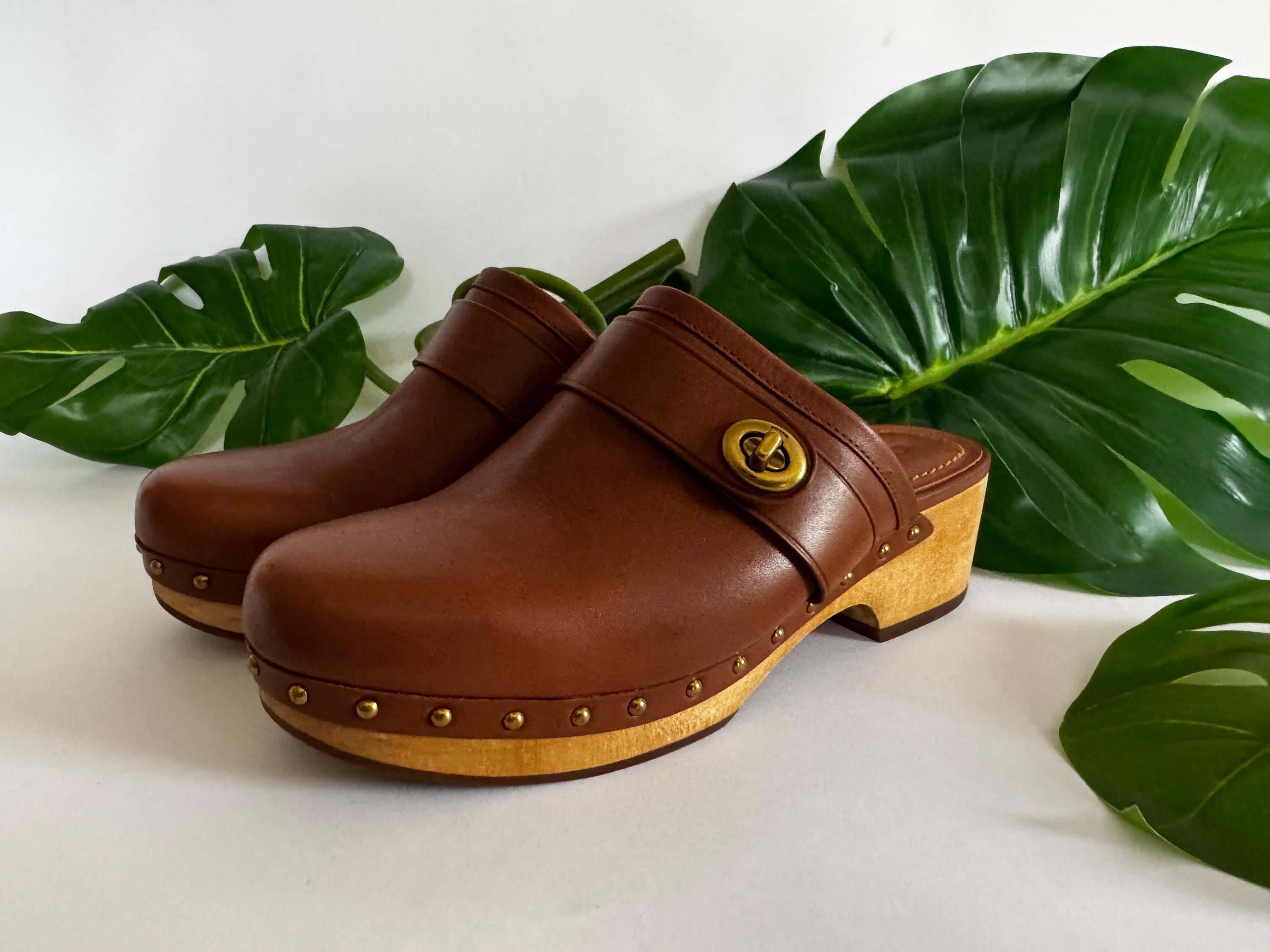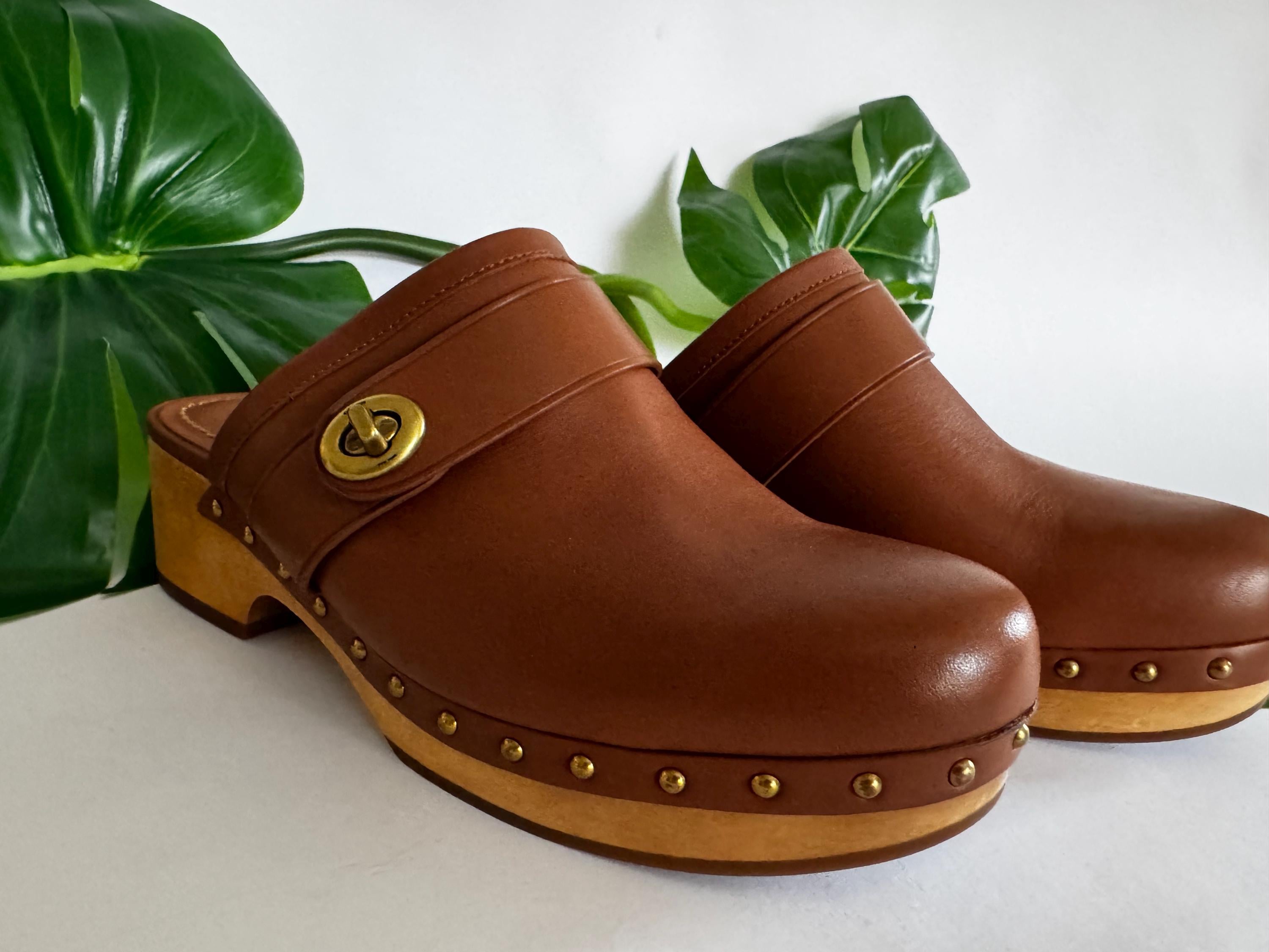 Inspired by designs from the 1970s, this clog is crafted from leather with a wooden heel and our iconic turnlock detail. Wear with skirts and denim for a nostalgic touch. All purchases come with dust covers to protect and keep your bag looking fabulous! If you take care of a vintage coach bag, it will last another lifetime!