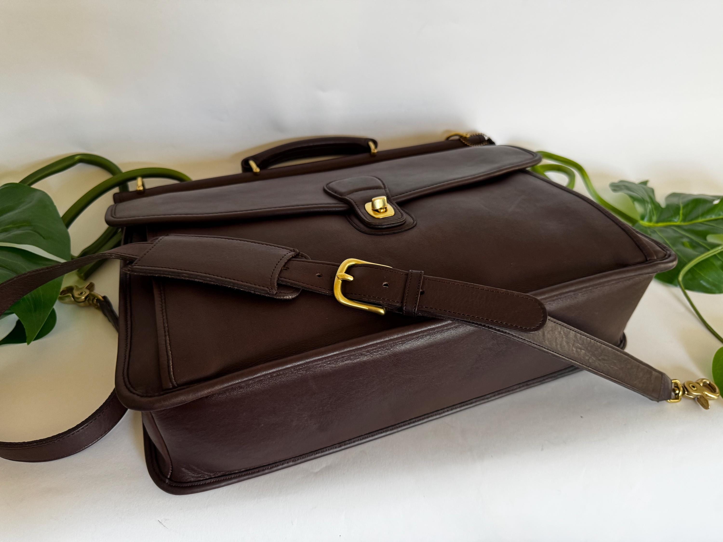 This Beekman Briefcase is a versatile option that can be used as a unisex briefcase or messenger-style bag. It is spacious enough to accommodate work essentials, legal-sized documents, a laptop, paperwork, and more.