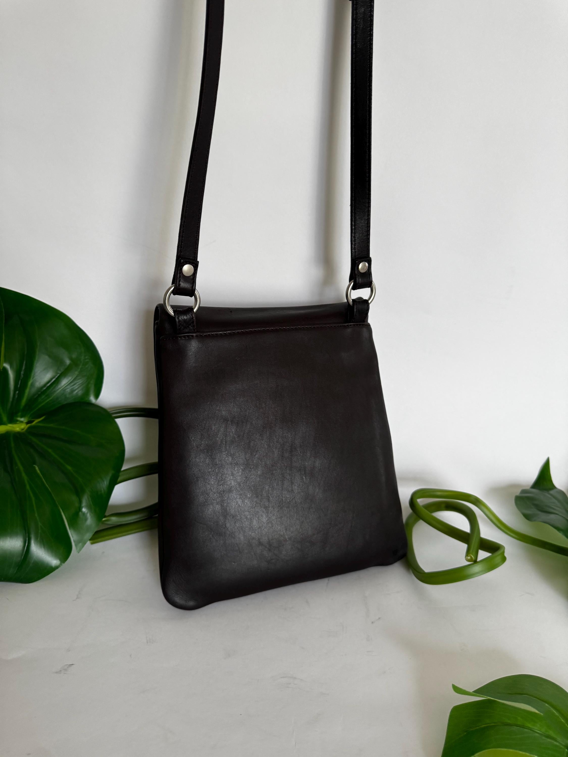 Features: -Interior zippered pocket -Interior slip pocket under front flap -Silver hardware -Shoulder strap, 20” drop adjustable -Cleaned, Conditioned & ready to use!