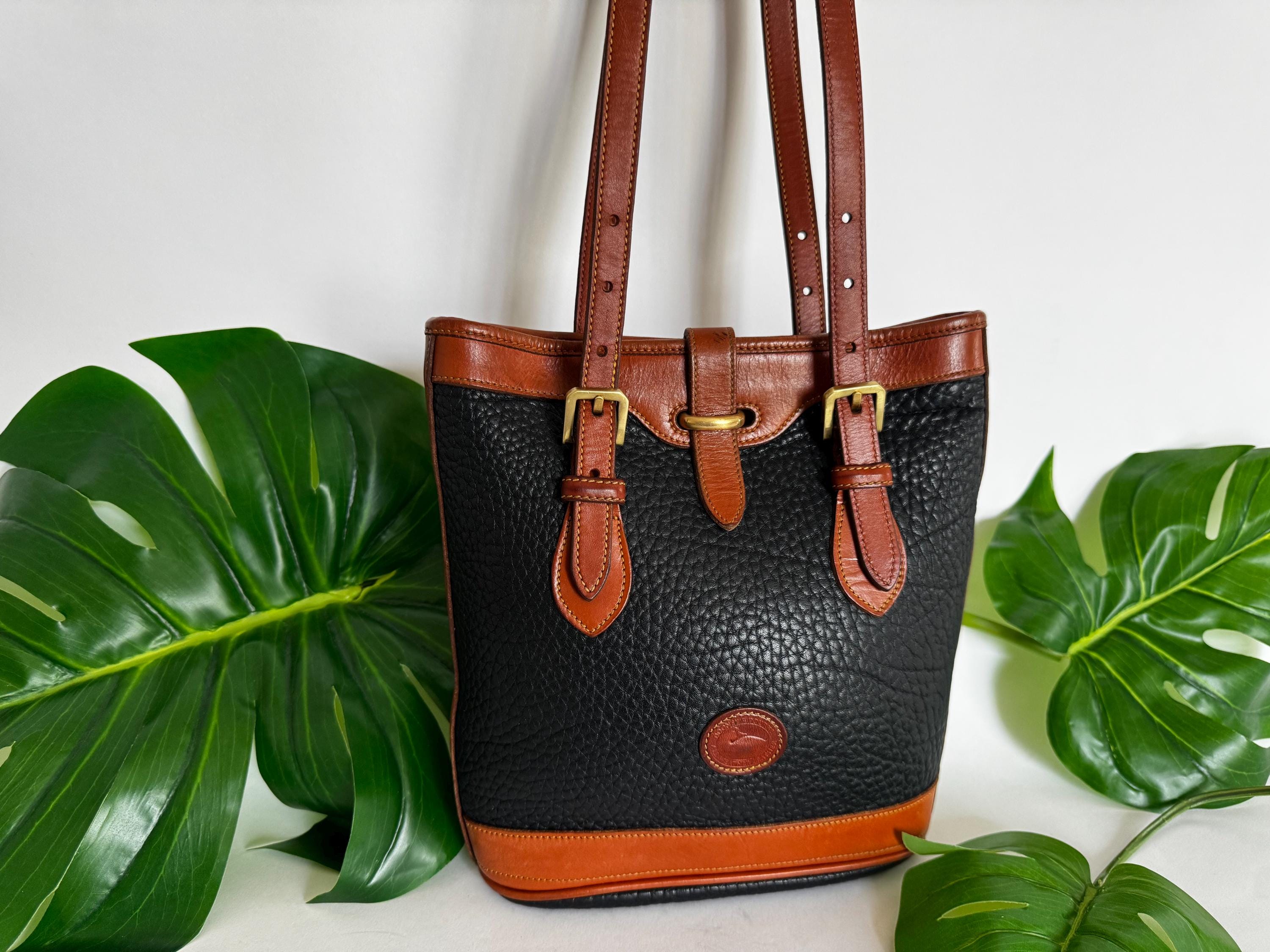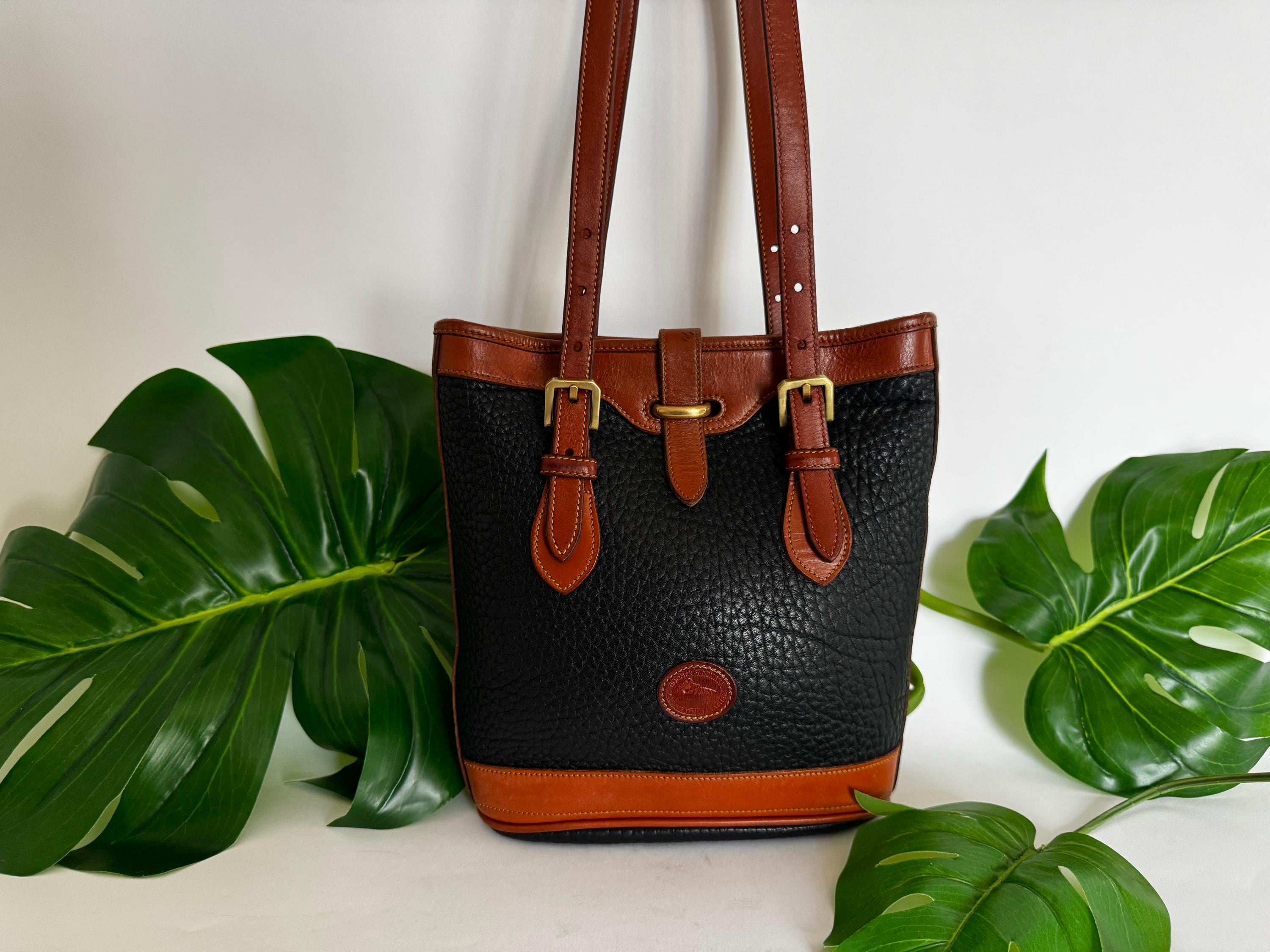 Vintage | Dooney & Bourke | Equestrian Bucket Bag | Black and British Tan