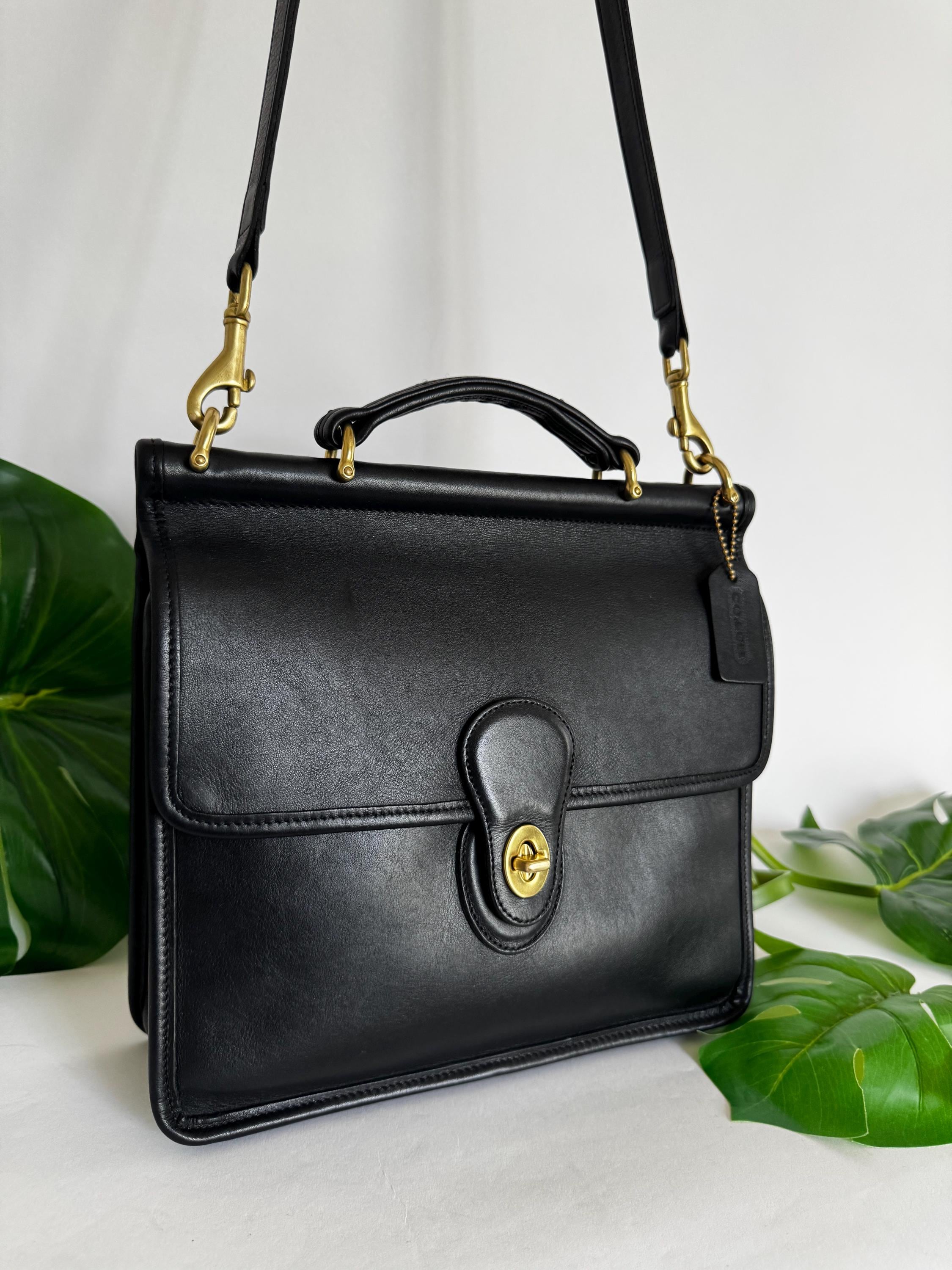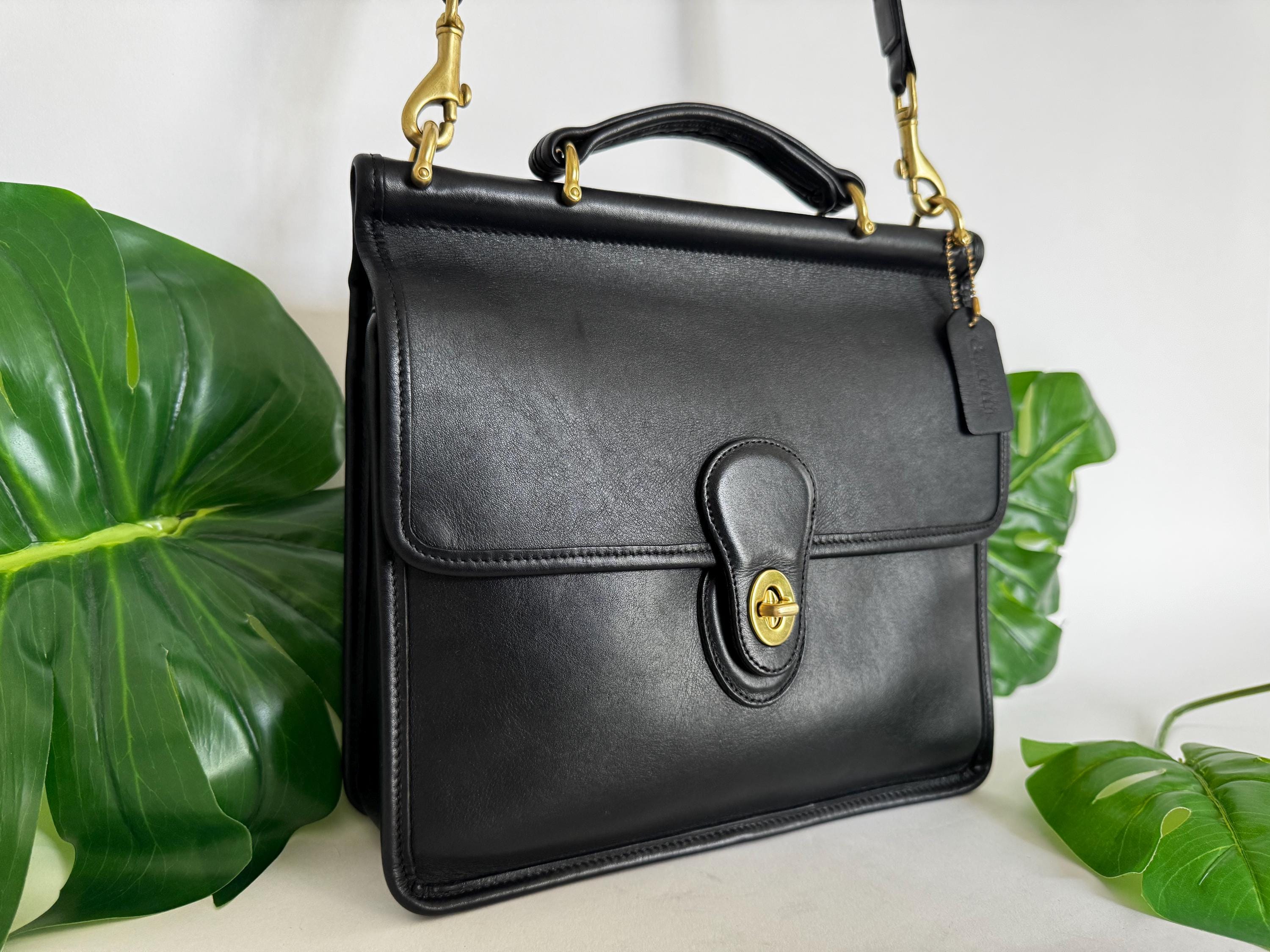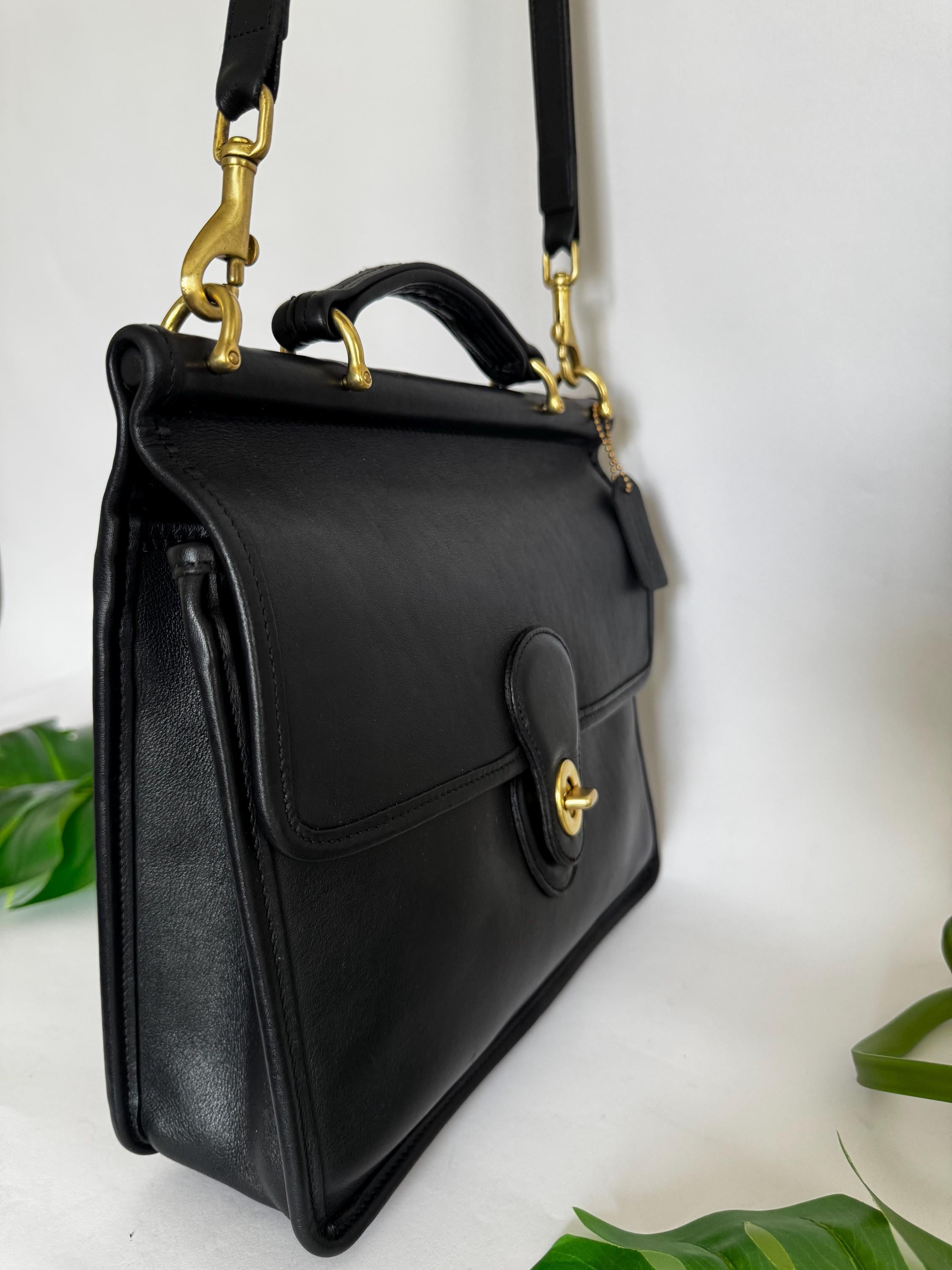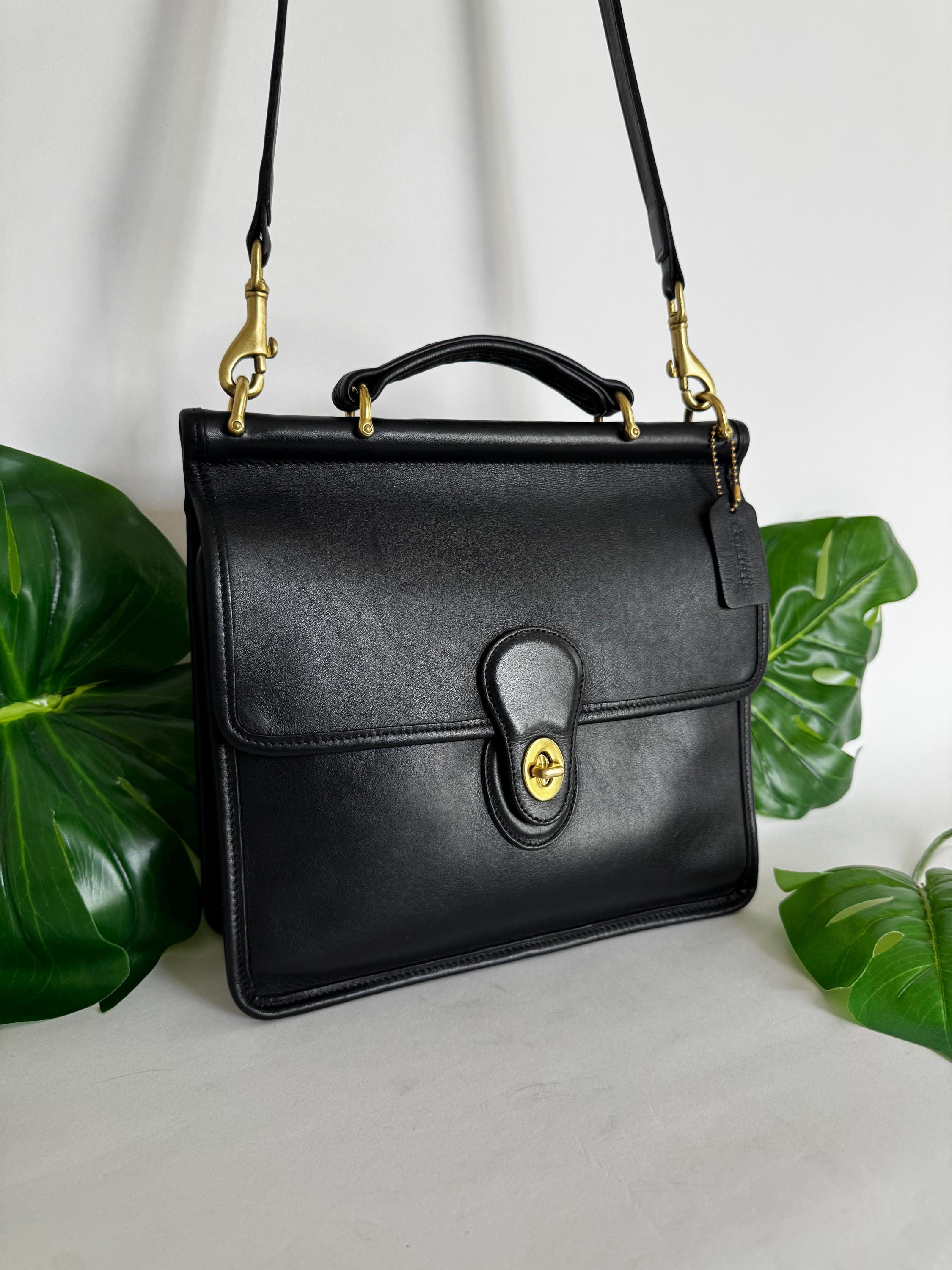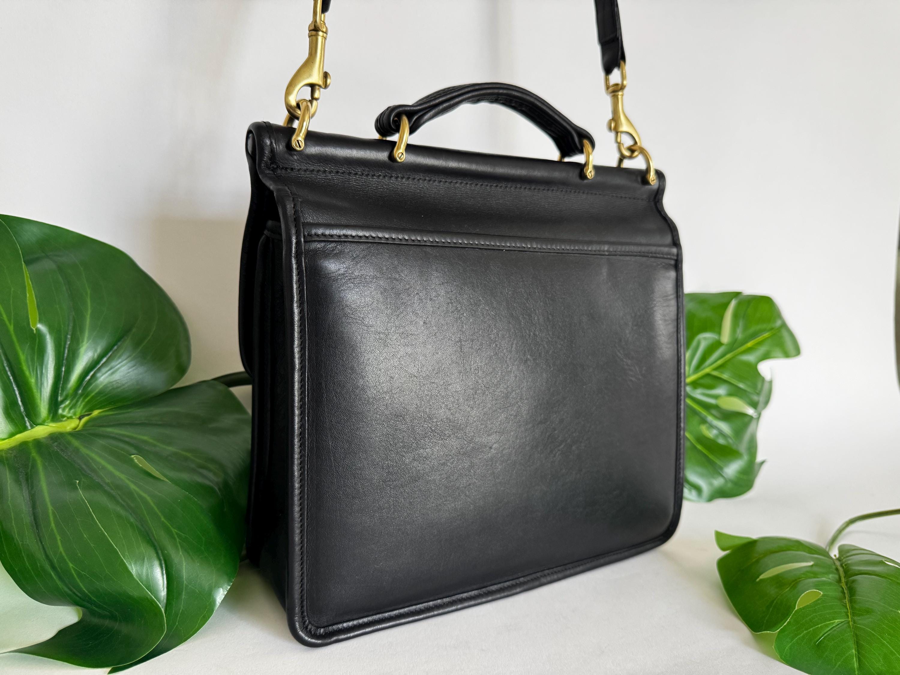 This Coach bag has thick, soft, and smooth leather with brass hardware. It is marked w/ an embossed creed and serial number indicates this bag was made in the USA in 1997
