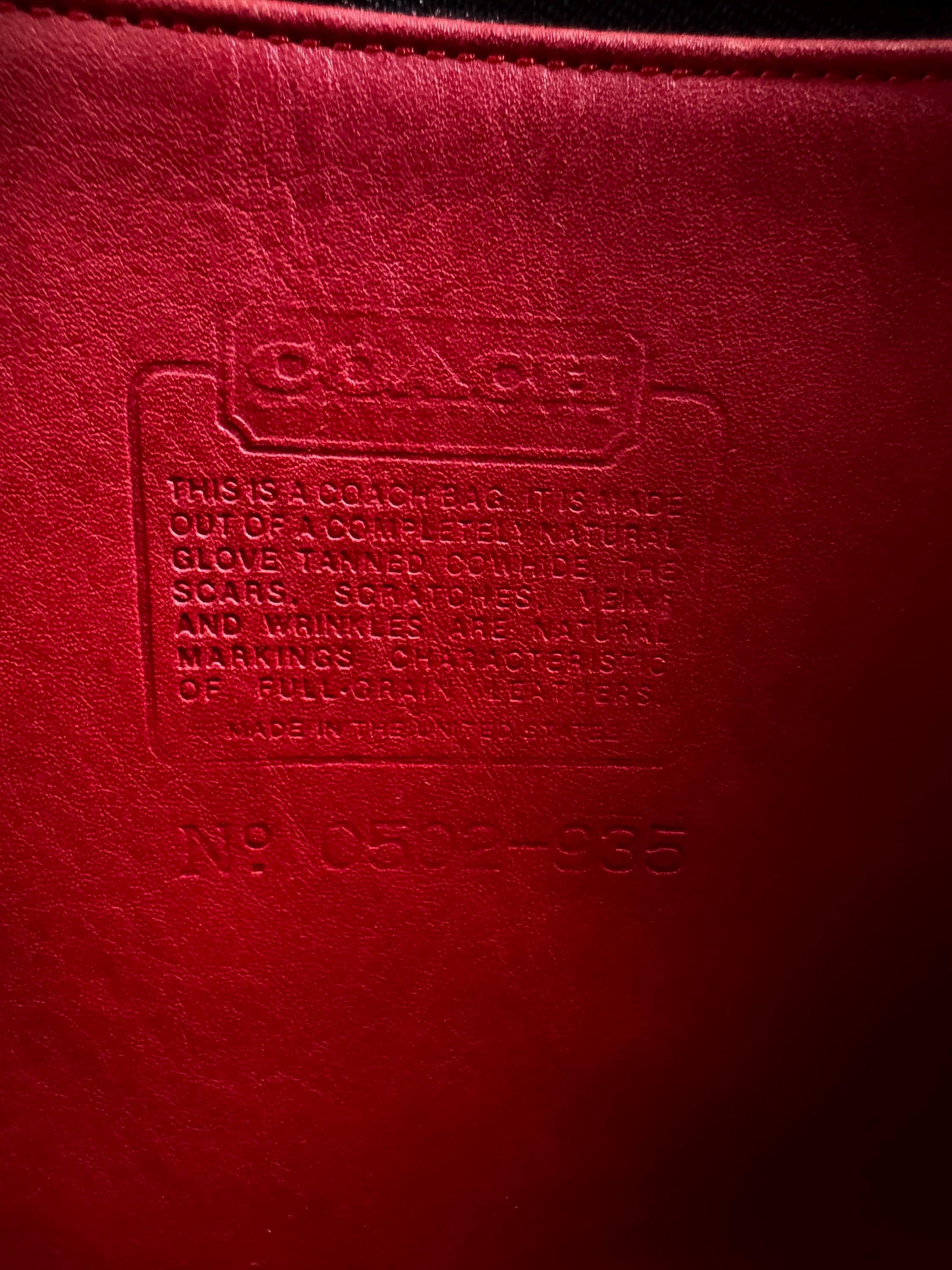 This Coach bag features thick, soft, smooth leather and brass hardware. It is marked w/ an embossed creed and serial number indicates this bag was made in the United States pre-1990.