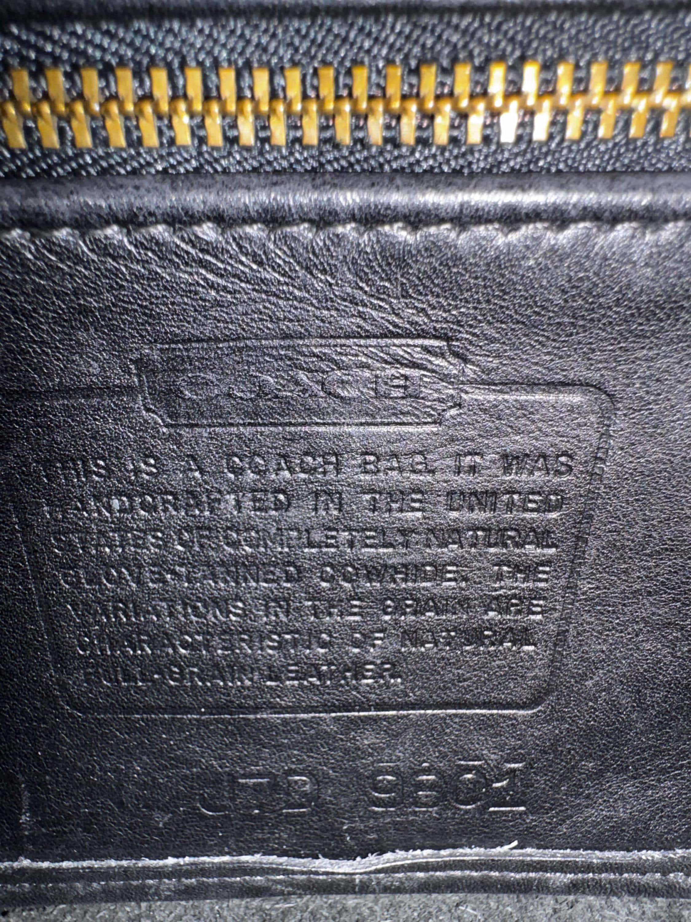 This Coach bag has thick, soft, and smooth leather with brass hardware. It is marked w/ an embossed creed and serial number that indicates this bag was made in USA
