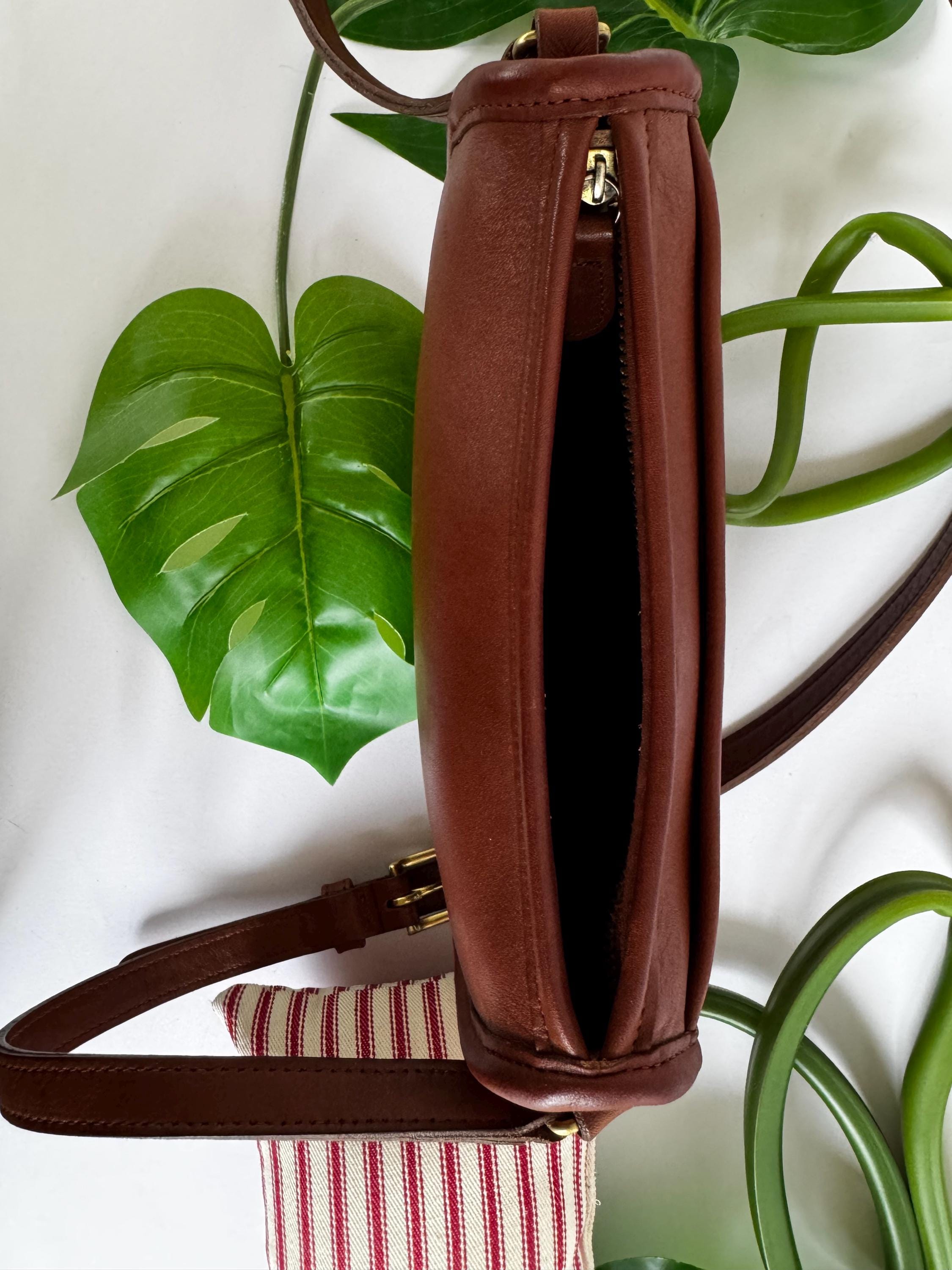 Features: -Top brass zipper closure -Exterior slip pocket -Strap 22" drop- non-adjustable -Cleaned, Conditioned, and ready to use!